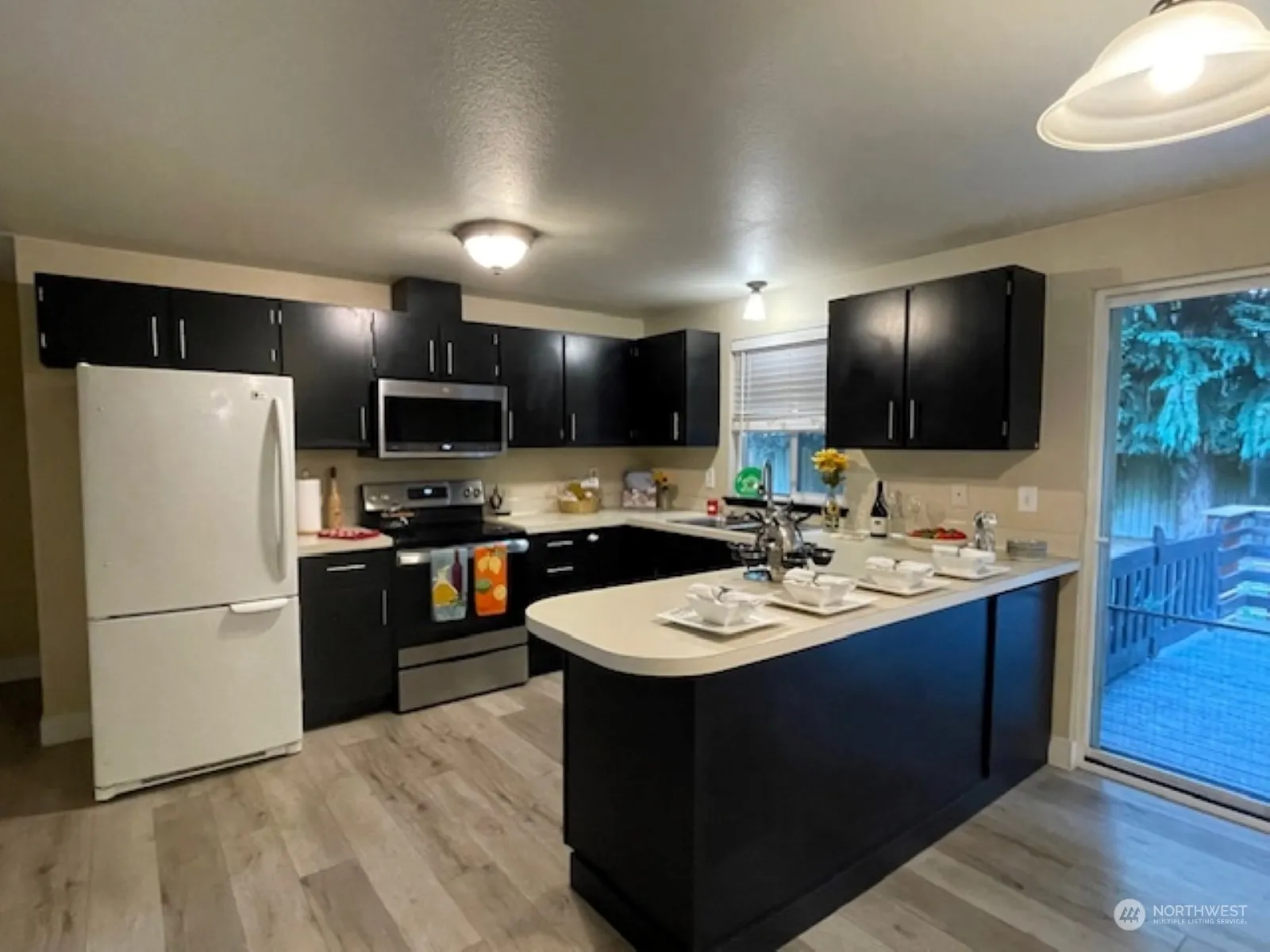Location, Location, Location! Wonderfully updated home tucked away on a private (3 homes) road. Close to shopping, restaurants, entertainment, parks and a transit stop right across the street. Spacious fully fenced in back yard is peaceful and quiet with space to spread out. Keep cool in the summer months with the mature tall trees that offer plenty of shade and privacy through out the property. This home has an inviting formal living room with a wood burning fire place. Step up one step to the kitchen with a snack bar eating space and dining space for a small table. Cozy family room right off the kitchen. Primary bedroom connects to the full bathroom. This home has been well kept and well loved. RV parking and No HOA!