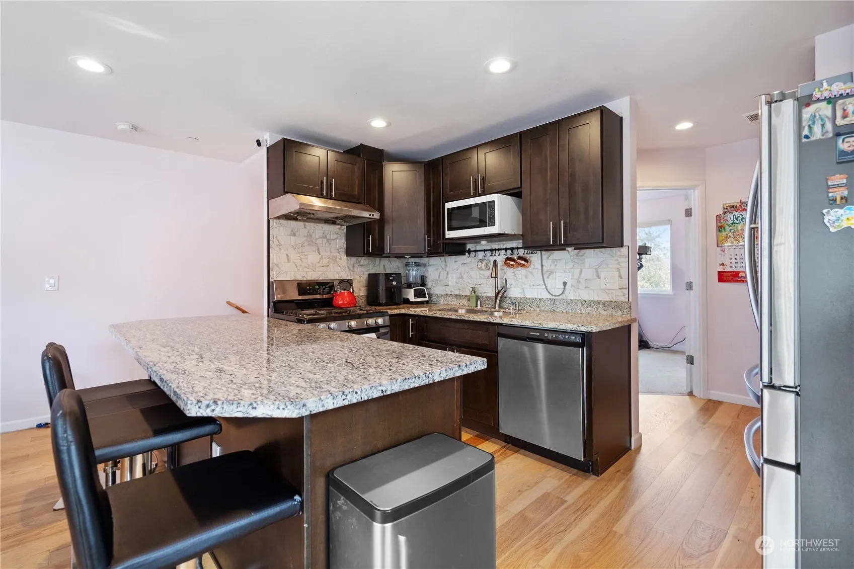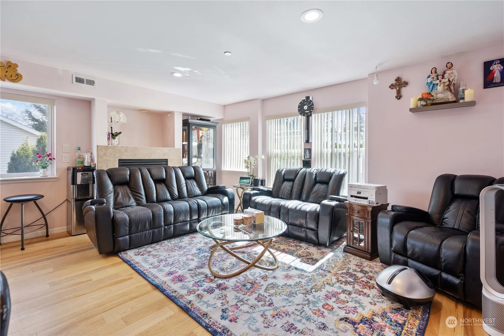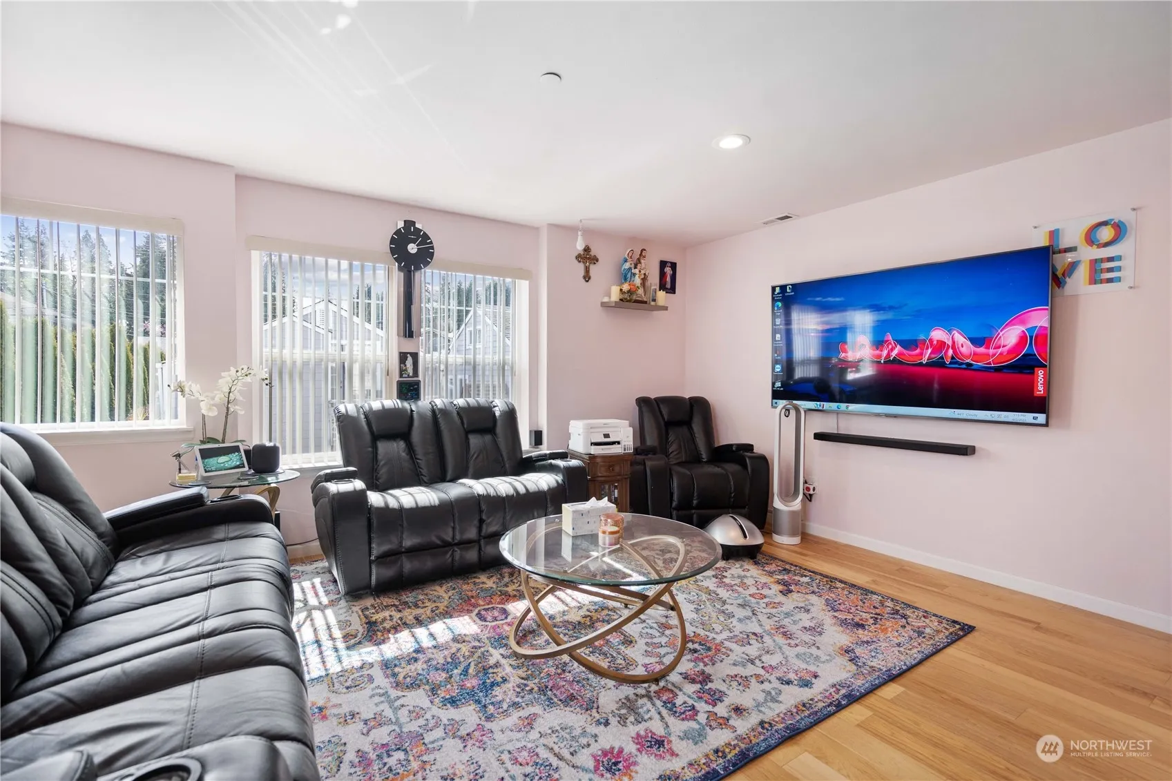 Welcome to Royal Heights Townhome in Burien! Flowing design with 5 bedrooms, 3 full baths and a spacious 2 car garage. Open floor plan with natural light thru-out the living room & kitchen. Granite counters, soft close cabinets, SS appliances with corner island to make a beautiful kitchen. Main floor has a bedroom/salon, 2nd floor features a Guest suite, & Upper floor features Primary suite with 2 full baths and 2 additional bedrooms. Newer wood laminate, windows, molding, 90% gas efficient central furnace, and much more. Private & Spacious Corner Unit with Trex Deck for relax living. Well Managed HOA, No Rental Caps and Conveniently Located to Downtown Burien, SeaTac Airport, I-5 & 518 Freeways, Parks, Schools & Shopping!!