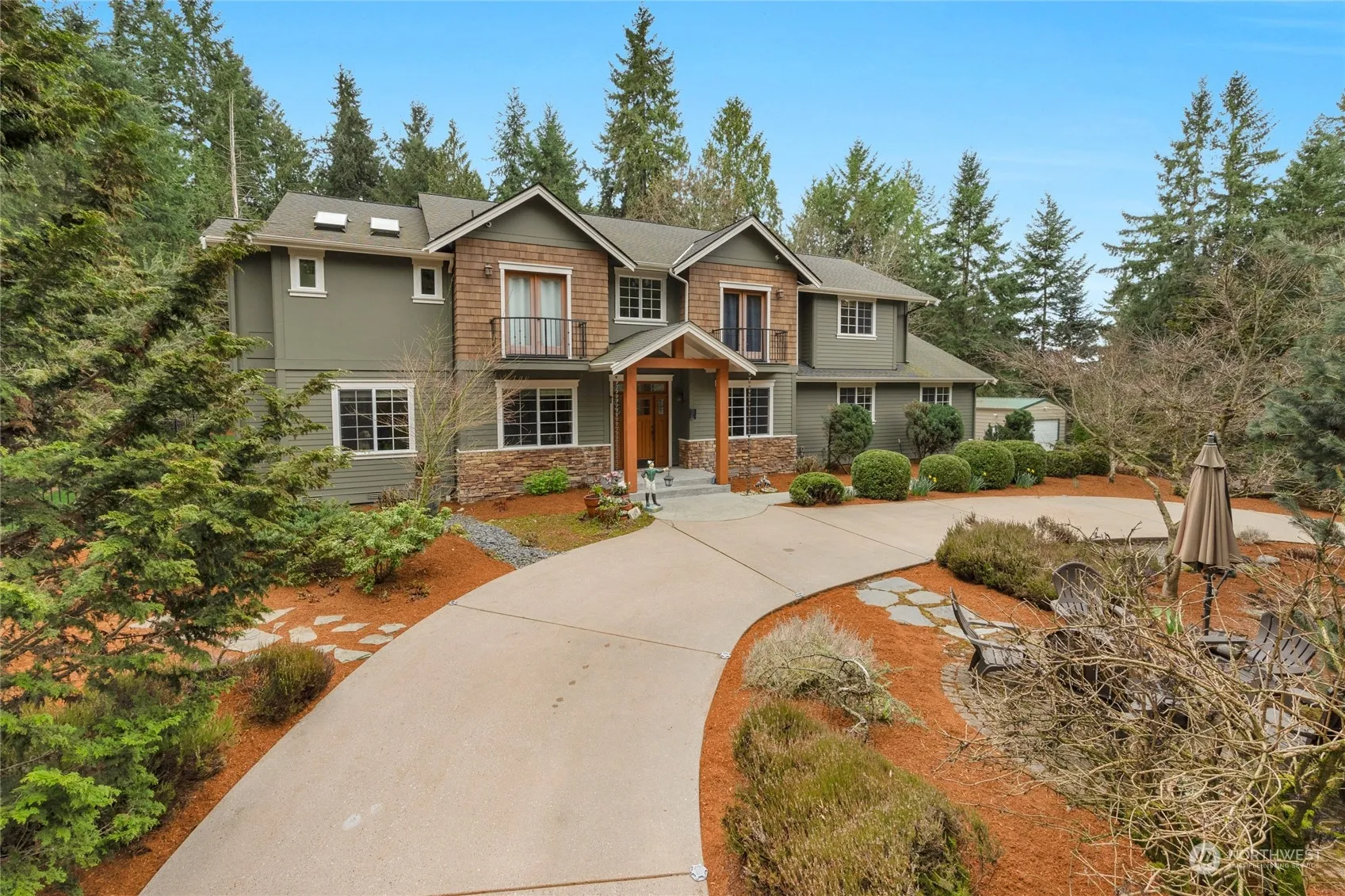Discover unparalleled luxury in this 3,300 sq ft Woodinville masterpiece, nestled on a secluded .94-acre wooded lot. This 4 BR, 2.5 BA haven features a gourmet kitchen w/granite countertops & Viking cooktop, primary Suite w/dual closets, dual-headed shower & heated marble floors promising spa-like comfort. Hidden delights include a secret rm behind a sliding bookcase! Stunning skybridge enhancing architectural elegance. Modern conveniences are ensured w/all-new tankless water heater, furnace, and exterior paint. Don’t miss the 30×14 detached shop. Situated in the coveted Northshore SD. This home is not just a residence but a lifestyle of unparalleled elegance & comfort. Welcome to your dream home, where luxury meets craftsmans style!