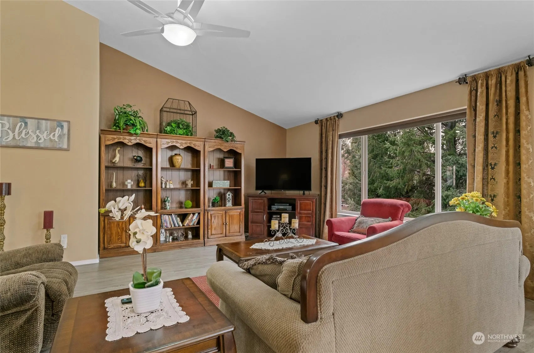 Turnkey daylight rambler with nearly 2900 square feet to enjoy! This highly maintained home offers soaring cathedral ceilings in open living and dining room. Kitchen features granite counters, stainless appliances, breakfast bar and large pantry. Primary suite on the main level includes walk-in closet and attached bath with dual vanity. Plenty of room to spread out and relax with huge family room and separate theatre room below. Enjoy your morning coffee or evening beverage from the upper deck with access off of the great room. Are you looking for your very own private outdoor oasis? This home has the perfect canvas to bring your dream backyard sanctuary to life. Partially fenced yard with irrigation, sprinkler system and mature trees.