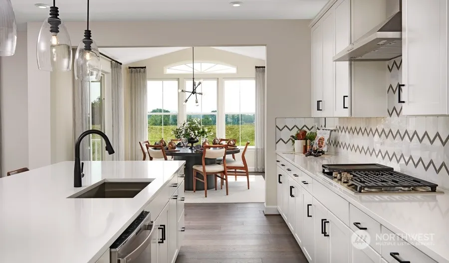 A dramatic two-story entry welcomes guests to the inviting Donovan plan. The main floor offers a bedroom with private bath, a great room with fireplace and a gourmet kitchen with center island, walk-in pantry and adjacent dining room through butler’s pantry. You’ll also appreciate the extended covered patio. Upstairs, enjoy a loft and a lavish owner suite with a private bath and walk-in closet plus an additional three more bedrooms (so 4 bedrooms total upstairs plus one on main floor), a full bath and a junior suite. Ideally located on cul-de-sac and backs up to green-belt. Ask about special financing! If you are working with a licensed broker please register your broker on your first visit to the community per our site registration policy.