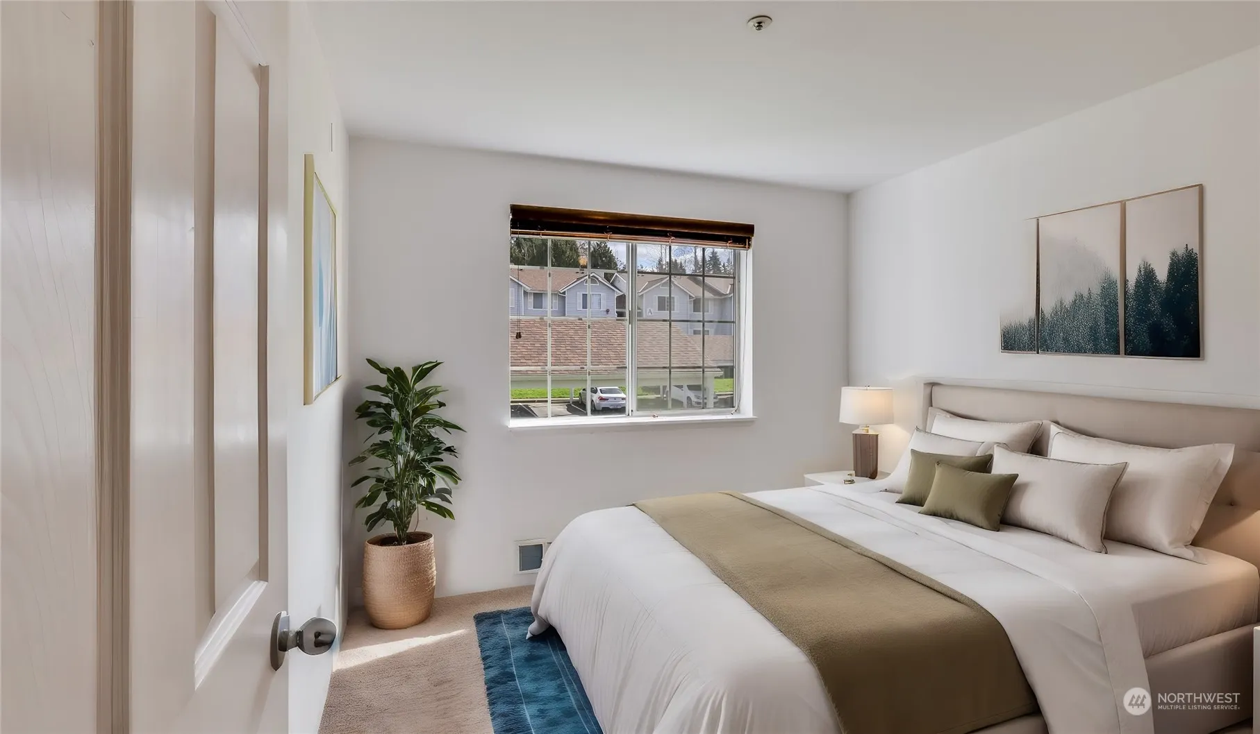 Clean and affordable living in Newcastle. Bright 2 bedroom, 1 bathroom second floor condo with both a private garage AND covered parking space. Pleasant balcony looks over courtyard between buildings. Washer & Dryer in the condo! Award winning Issaquah School District (Newcastie/Cougar Mtn/Liberty), No rental cap – allows for investment opportunity. Fresh paint, new carpet, kitchen w/stainless-style appliances, storage room on balcony. Walkers Run Community offers great amenities including sports court, playground, pool, fitness room, spa & more! Walking distance to parks, restaurants, grocery shopping, and medical facilities. Digital staging. See today!