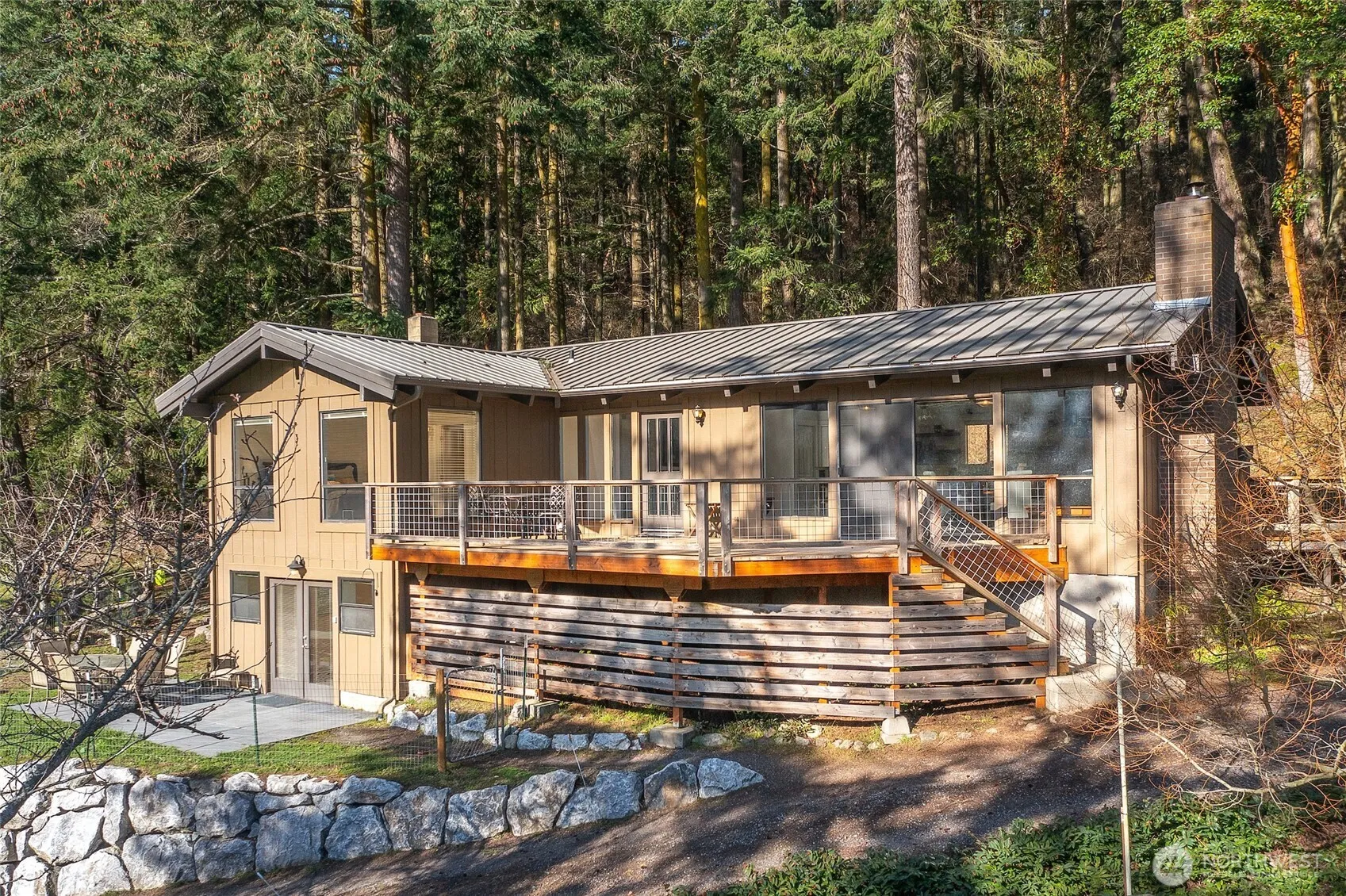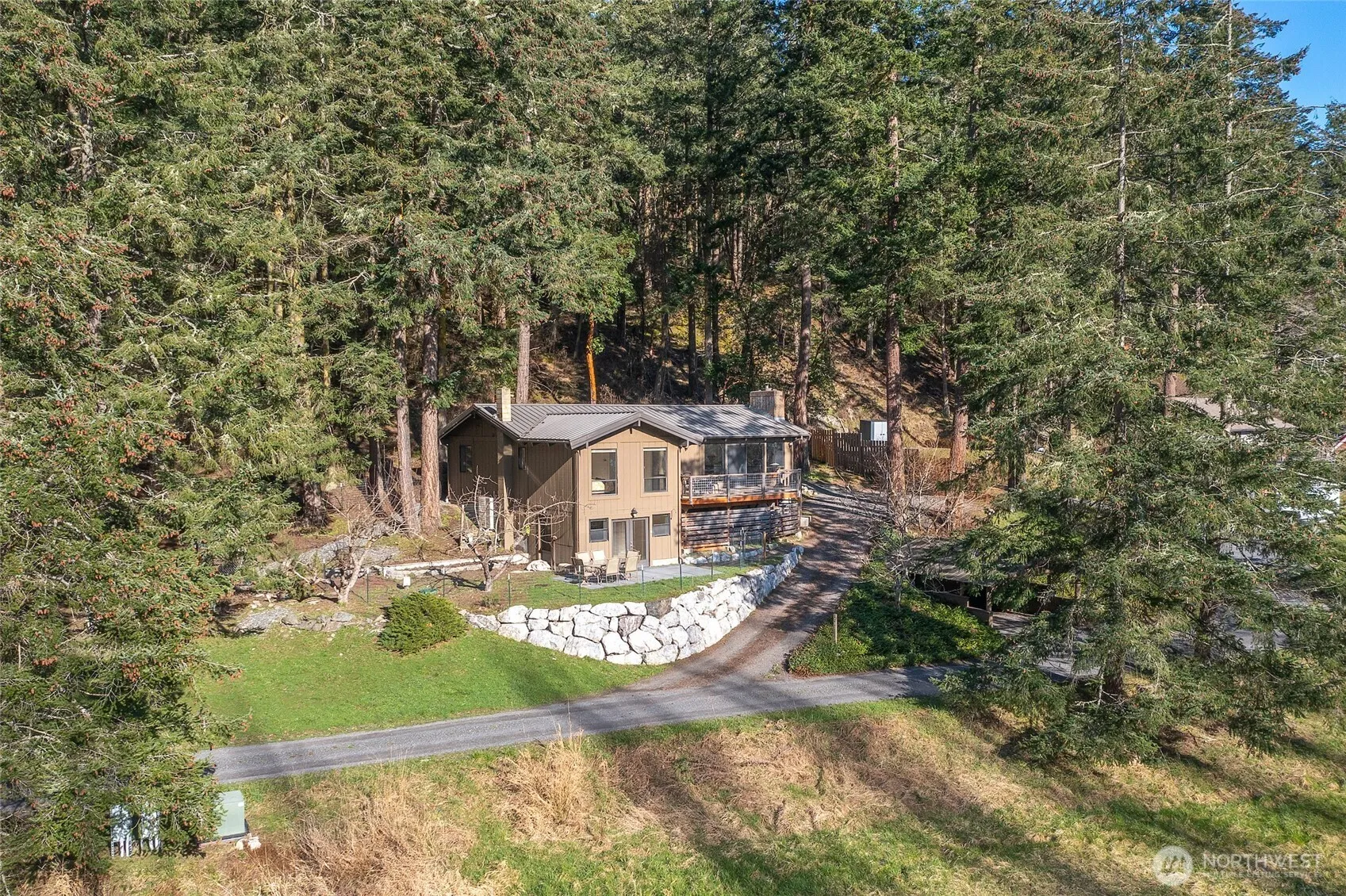 Vacation rental just minutes from the ferry and steps from Bay Head Marina. Meadow and filtered marine views from the main level with a large sunny deck to take in the quiet setting. The main level is an open plan great room with a spacious kitchen, dining area and fireplace plus 2 bedrooms/2 baths. The primary bedroom with ensuite bath enjoys pastoral views of the common area. The freshly renovated lower level studio with kitchenette and 3/4 bath can be accessed from interior stairs or from a separate exterior entrance. Owner may lease a slip across the street at Bay Head Marina for a reduced rate (subject to availability). New paint throughout, Bay Head Community Water and Eastsound Sewer. Enjoy full time or part-time with rental income.