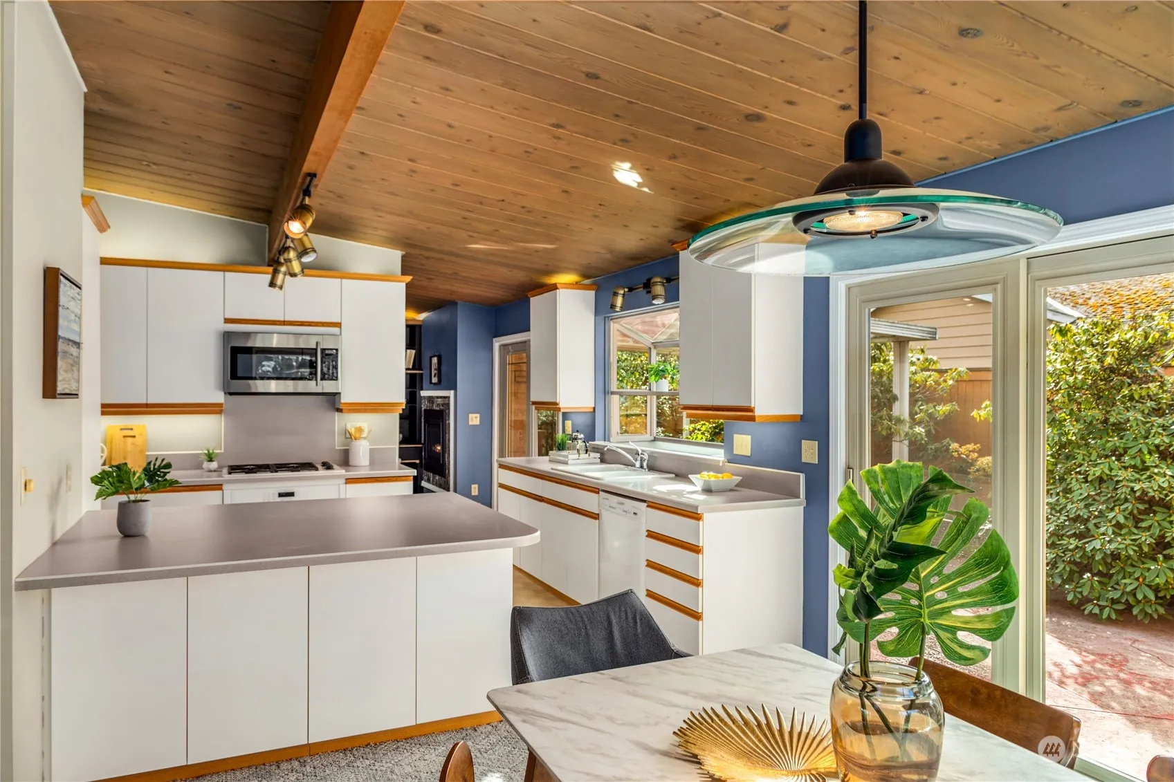 Opportunities abound on the North End of Mercer Island. Here is your chance to honor the mid century architecture to live in and update, fully remodel, or build brand new. Phenomenal 11,000 sq ft fenced lot provides incredible flexibility. Interior has super functional layout with two large living rooms, each overlooking yard/patio spaces. Kitchen boasts lots of storage. Primary suite with direct access to back yard, 2 additional bedrooms and additional bath round out the one level living. Tremendous light and ceiling details throughout. Utility and extra storage room off carport. Sought after location 1 mile to town and freeway access, mere blocks to superb schools and parks. Provided inspection and sewer scope available upon request.