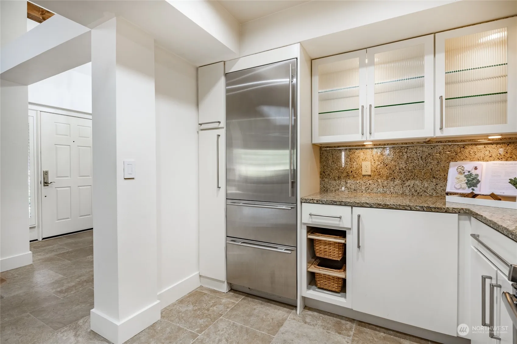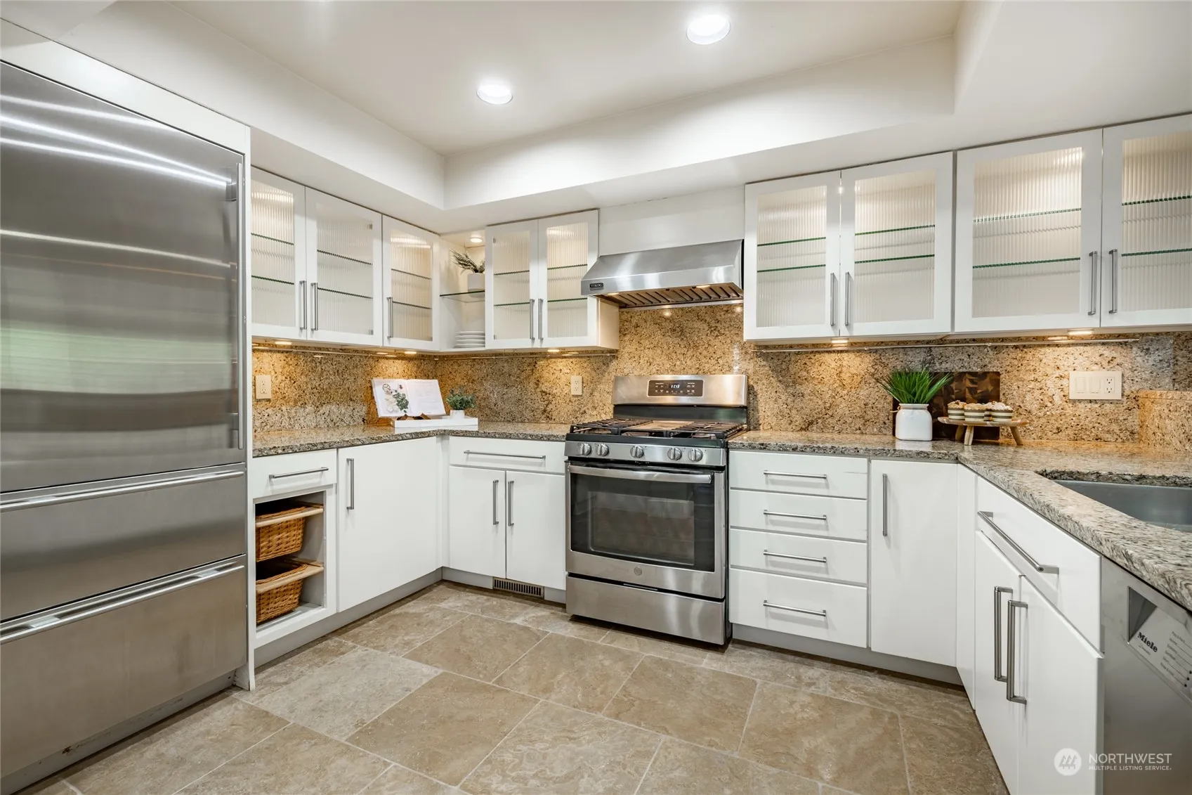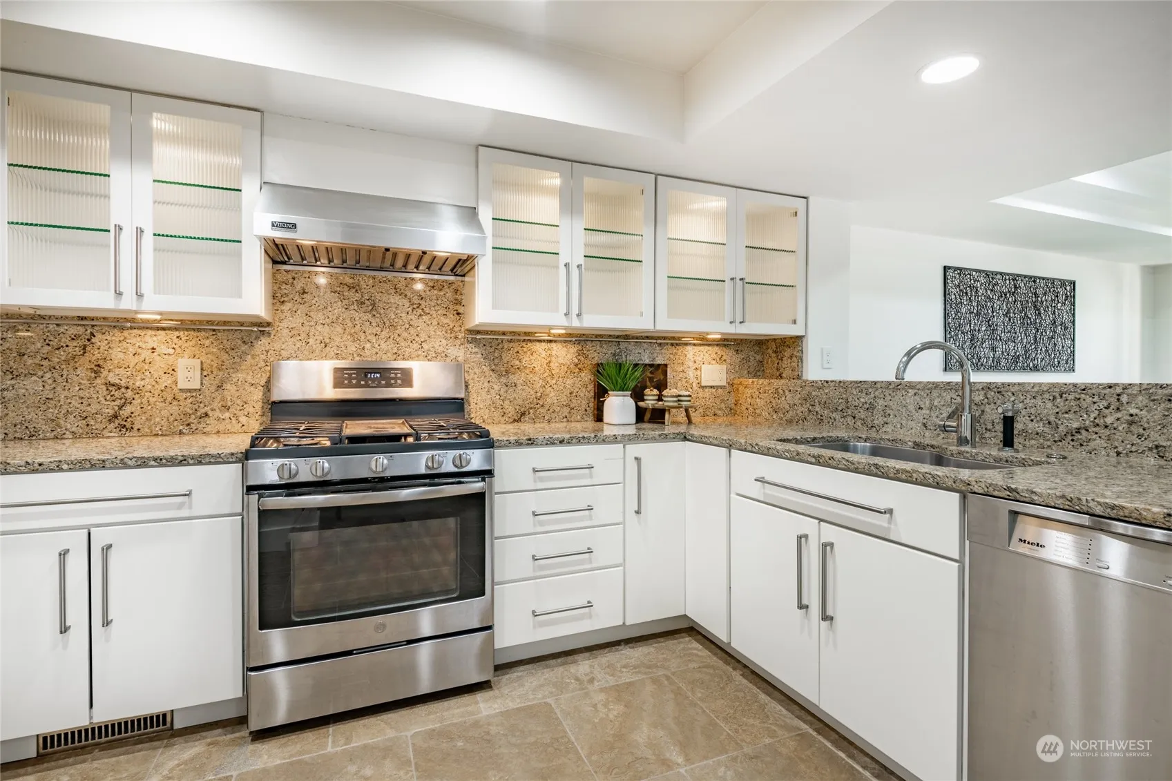 Stunning corner end unit at Gleneagle Villas in Semiahmoo! This beautiful two-bedroom, two-bath condo features a great floor plan with upscale features like granite counters, oak flooring, & vaulted ceilings. The large dining room & open concept living space is great for entertaining & flows out to covered patio that overlooks the pond. Primary suite is spacious with walk-in closet & updated bathroom w/ walk-in shower. Enjoy peaceful surroundings, a secure gated entry, & convenient amenities including large laundry room, gas fireplace & two-car garage with extra storage & work bench. With easy access to walking trails, golf, marine activities, and dining, this is the perfect blend of comfort & convenience. Affordable living in Semiahmoo!