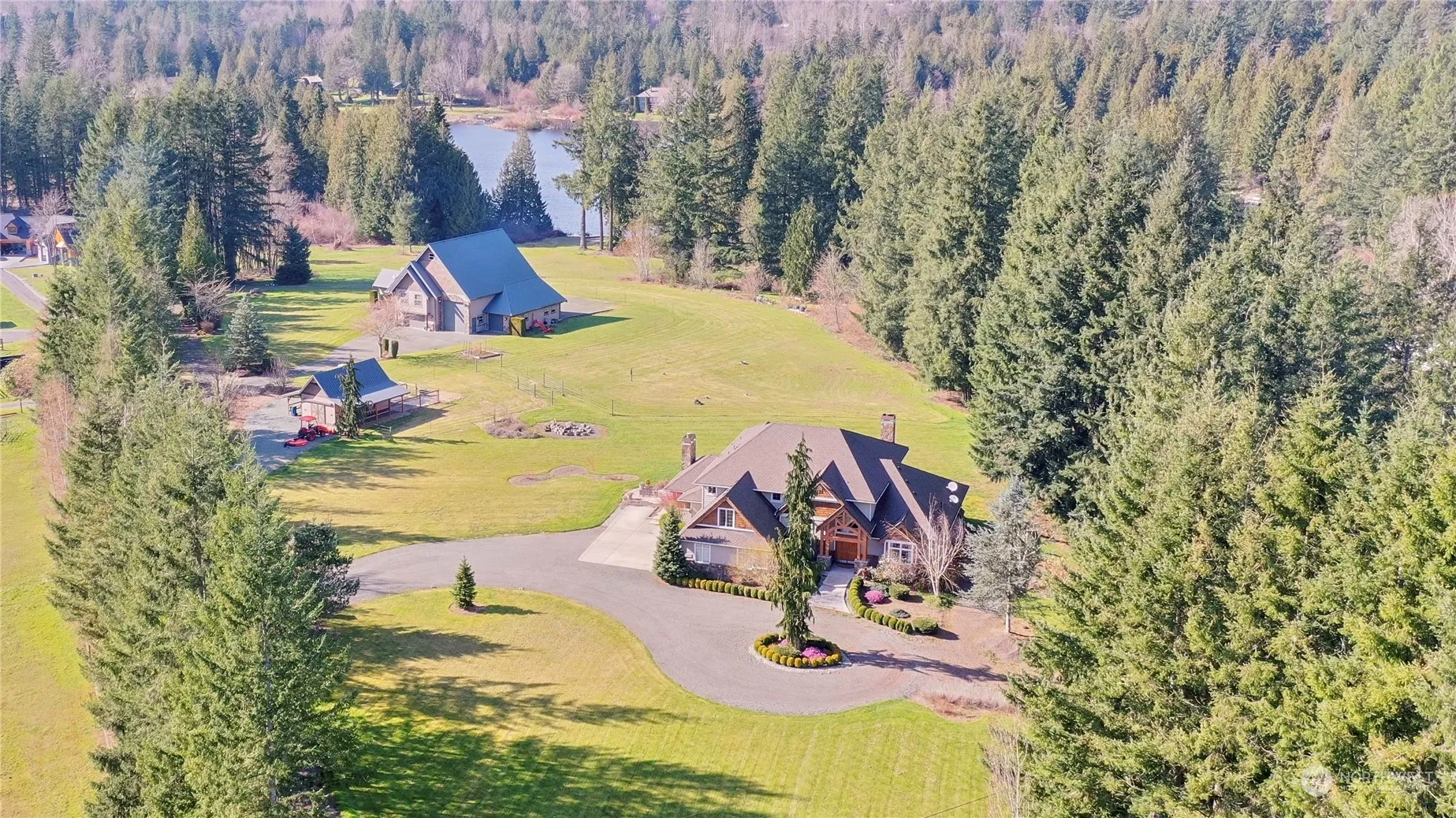 Quality & Elegance, Luxurious (John Buchan) Glacier Custom Design Build. (SELLER FINANCING AVAILABLE) This Timeless Estate boasts 2.5 acres nestled next to Lake Wagner. Beautiful Floorplan 2 Story, 4 BR, Master Primary Suite on Main, 4.25 Baths, Study/Great Room/Bonus Rm, 3 Car Garage. Grand Entry, Soaring Ceilings, Finest in Material (Travertine, Granite, Stone, Hardwood). Open and Bright Great Room with Floor to Ceiling Windows/ Living Rm / Formal Dining Rm & Family Room with River Rock Fireplace. Remarkable Craftsmanship throughout. Gourmet Kitchen w/Granite Countertops/Stainless Steel Appliances. Why walk to the Lake when you can ride your horse? (Equestrian). Large Entertainment size Patio w/built-in Fireplace.One of a Kind, Must See!