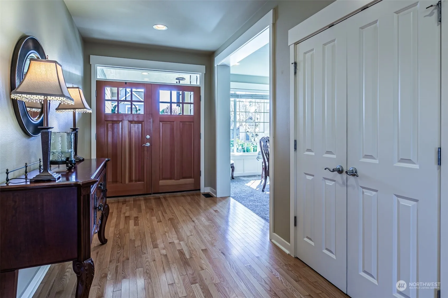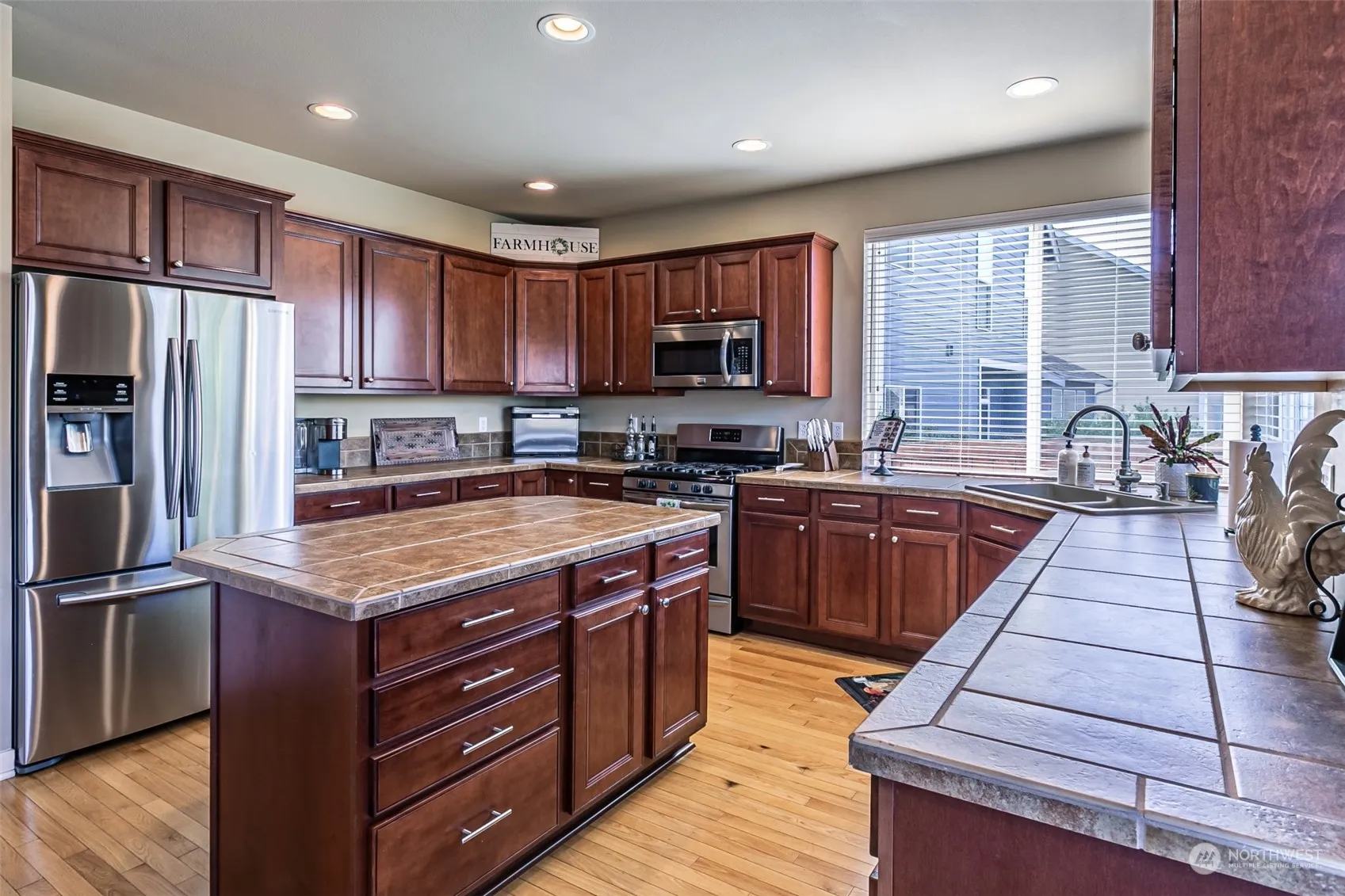 Stunning Mountain Creek Resale is now available! This 4 brm 2.5 bath, bonus room home is sure to delight. Beautiful wood double doors into a grand entry with real hardwood flooring on the main. Kitchen features stainless appliances, walk in pantry, island & gas range. Also on the main is dining/den/office. Lots of natural light throughout home! Upstairs oft, bonus rm, 3 brm plus owner’s suite w/walk-in closet, linen closet, 5pc bath. Main floor laundry w/cabinetry & sink. White millwork, 3 car garage tandem w/separate shop area, AC, all appliances stay. Professional landscaped/fenced backyard w/sprinkler system that backs to open grass area w/park & sports court. Extended patio plumbed for gas and all set up for entertaining.