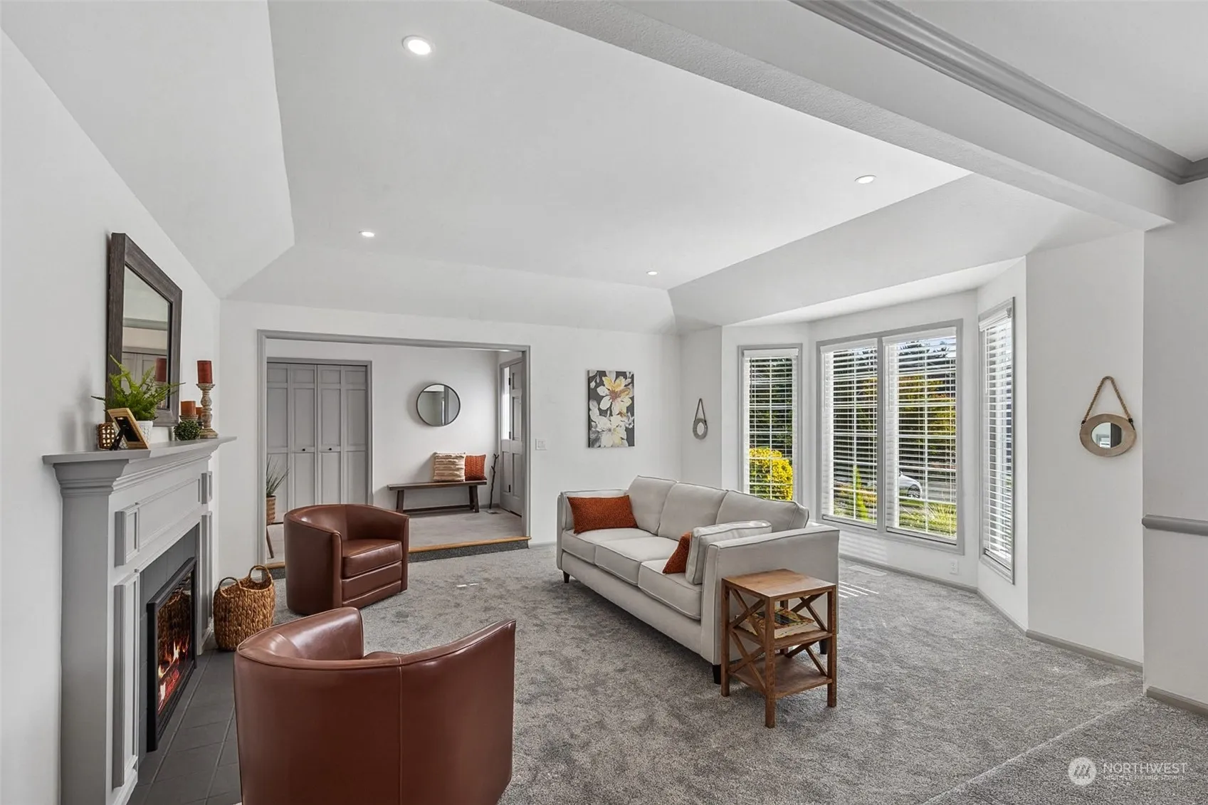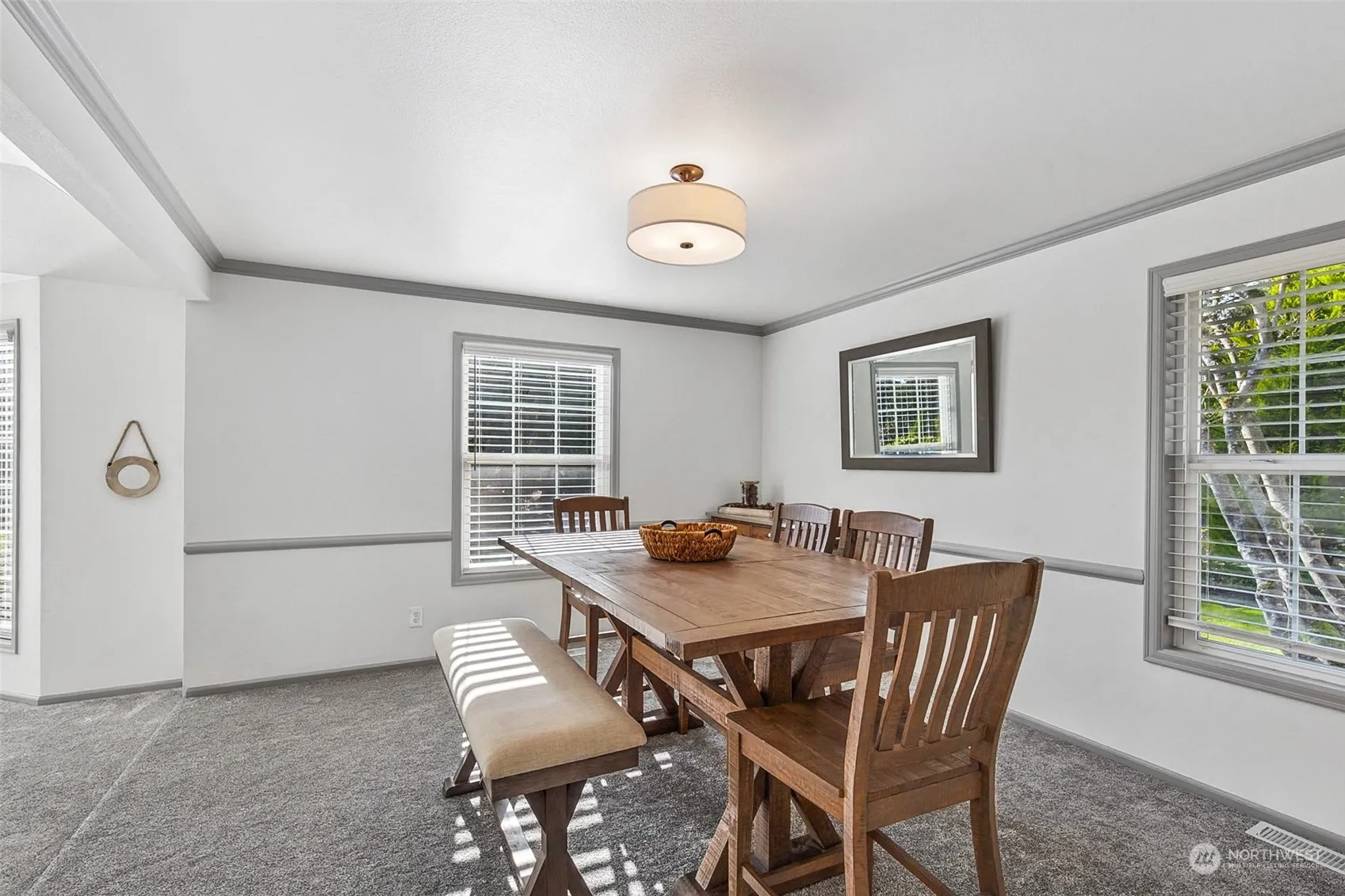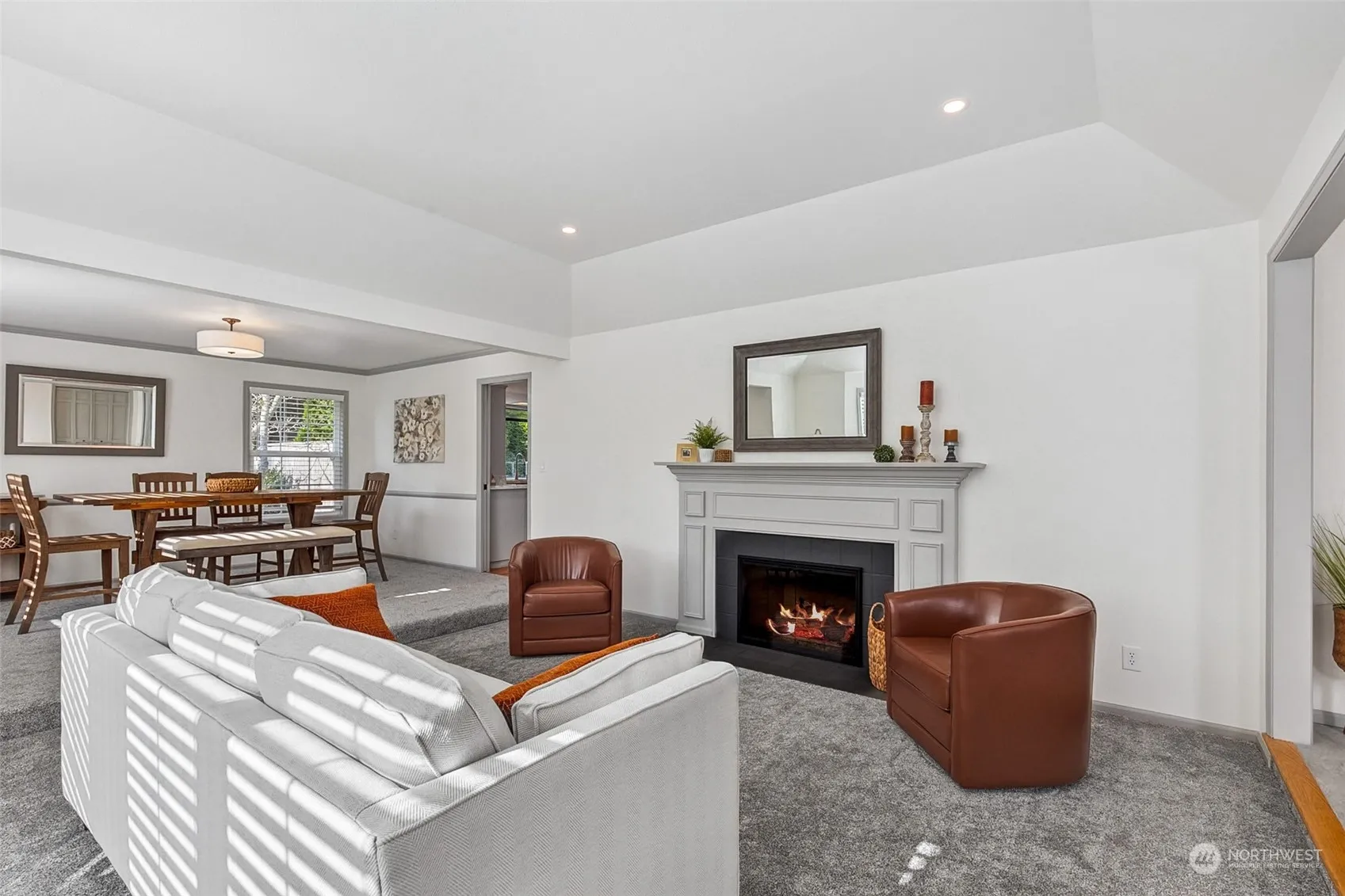 Sited for privacy on a large, lovely lot in the coveted Vine Maple community of Mill Creek, this spacious, impeccably refreshed rambler delivers. Abundant natural light bathes gracious living & dining rooms, enhanced w/coffered ceiling & mantled fplc – perfect for entertaining. Updated kitchen w/hdwd floors, granite counters & stainless appliances flows to casual dining & adjacent family room, w/access & views to the backyard oasis. Spacious patio & level yard, ready for summer gatherings & play. Updated primary suite, boasts newly remodeled 5pc bath, three closets, office & sitting area with coffee/wet bar. Organized 2 car garage w/workshop area. Award winning schools, easy access to nature trails & parks, Town Center dining/shops & I-5.