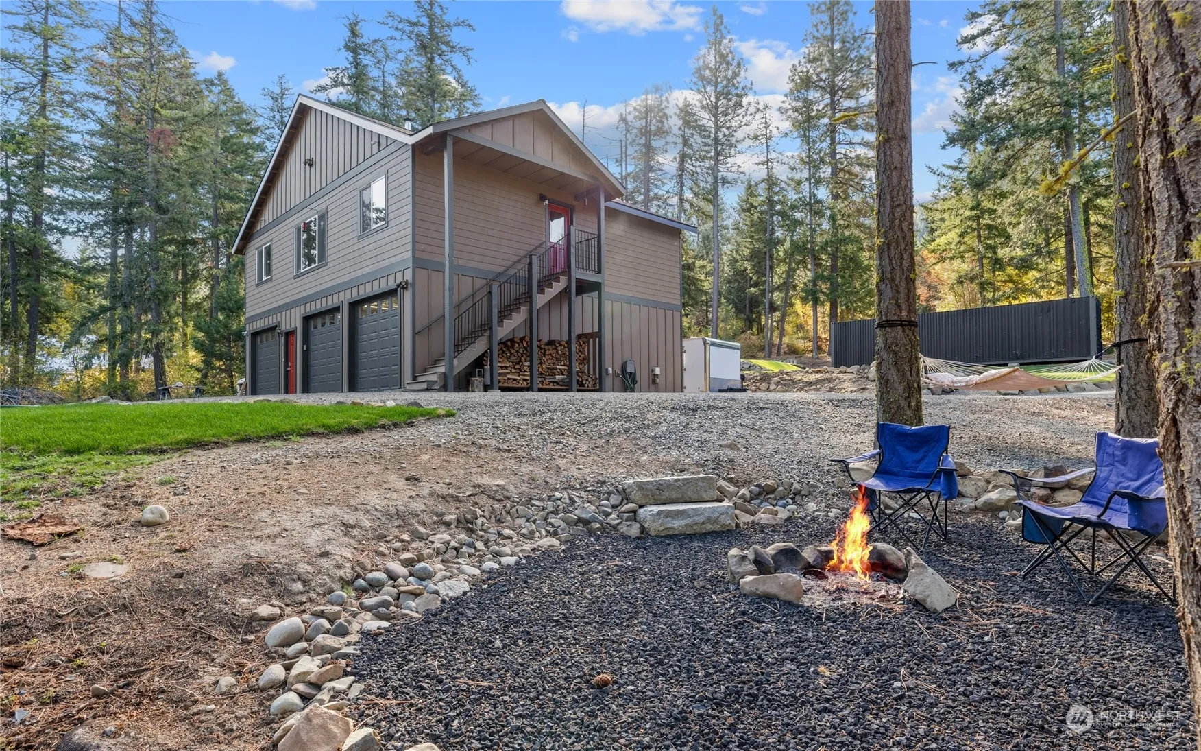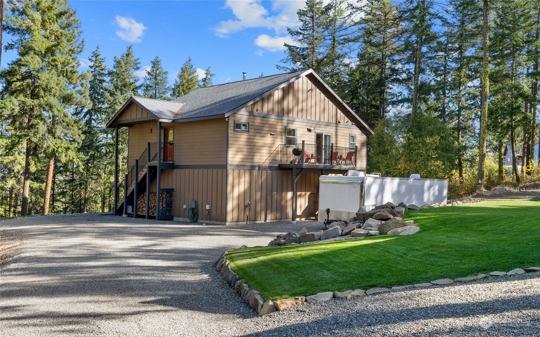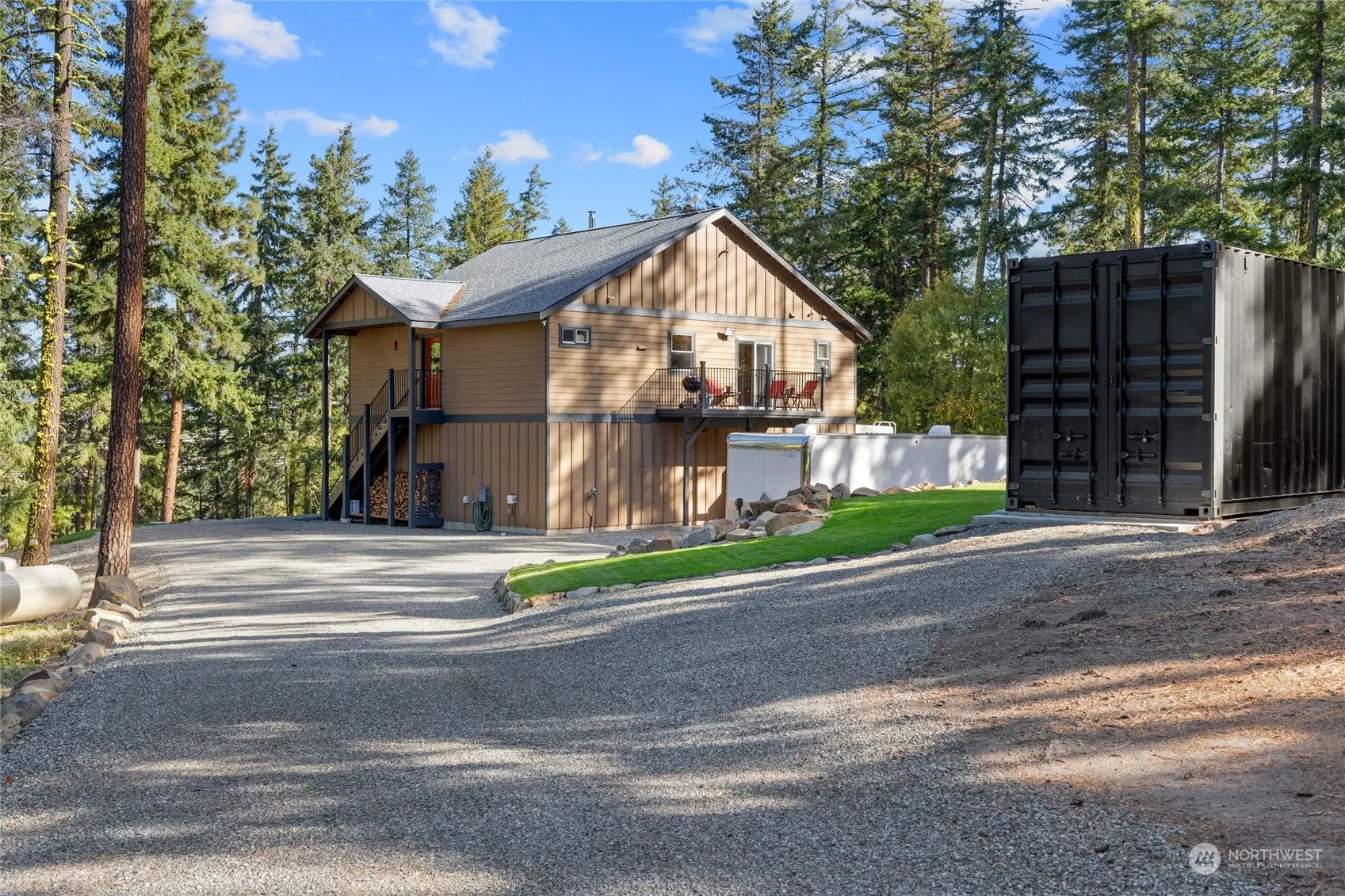 Charming private carriage house on 3 acres within the community of Tillman Creek. Surrounded by mature growth evergreens, located at the end of a dead-end street and situated just outside of town, a feeling of seclusion and privacy is abundant. The 4-car garage provides plenty of storage, with living space above that can be utilized while you build the house of your dreams. Or utilize easy options for expansion by making the container into an ADU, or a portion of the oversized garage could easily be converted to another bedroom/bath. Outdoor enthusiasts can ride/hike right out the front door to nearby trails. Multiple golf courses, rivers, lakes, shopping and dining in nearby towns of Cle Elum, Roslyn and Ronald. Great Airbnb opportunity!