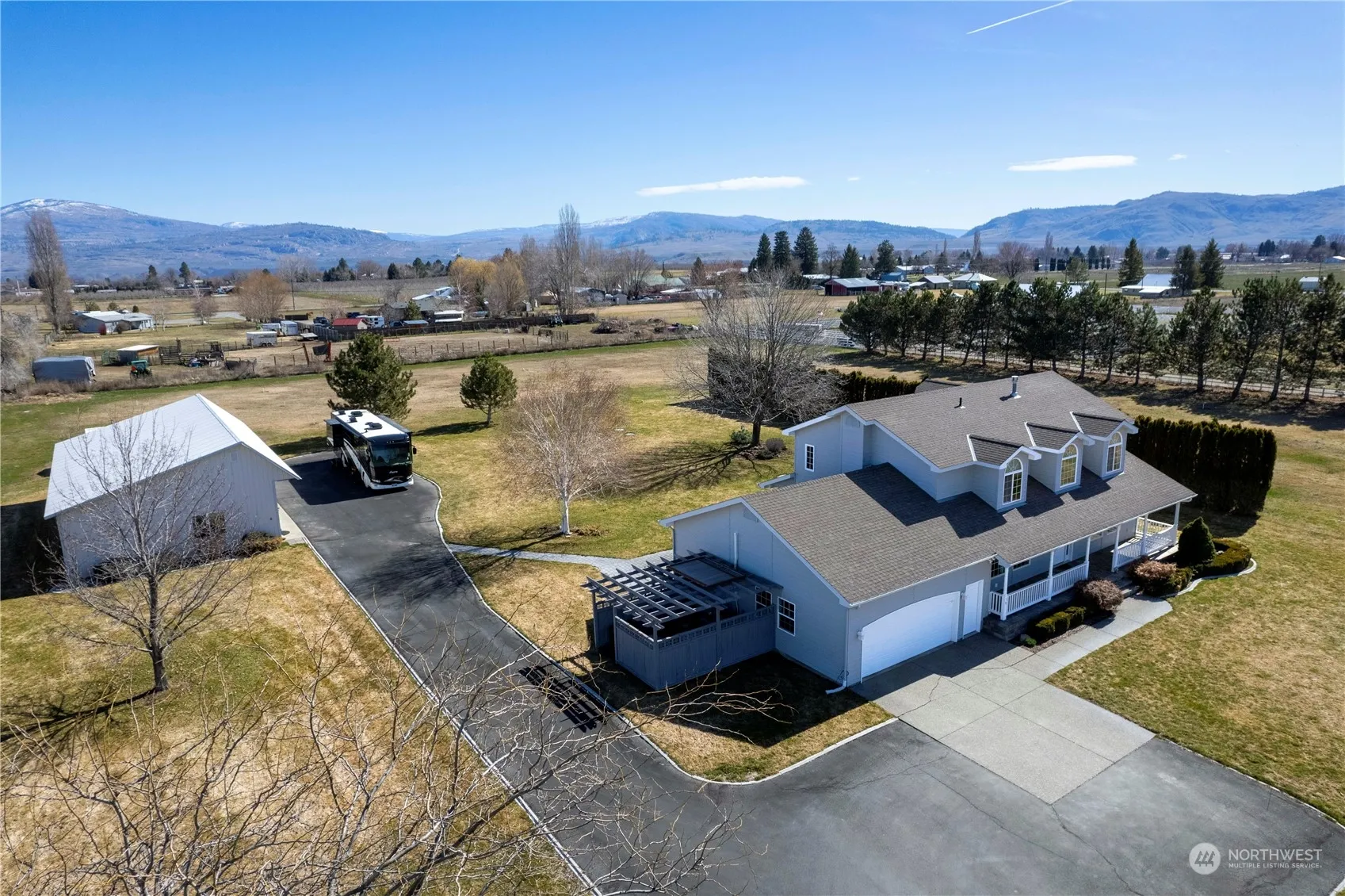 Explore the epitome of rural living on 4.74 irrigated acres, boasting a spacious 3800 sq. ft. 3-bed, 2.75-bath home with an attached 2-car garage. This charming property is complemented by a delightful 900 sq. ft. detached 1-bed, 1-bath ADU, offering versatility and potential. Inside, discover a sunken living room and a cozy gas fireplace, alongside a modern kitchen adorned with new appliances and countertops. Retreat to the upper floor and find primary bedroom featuring a beautifully remodeled, spa-inspired ensuite or to the basement with large family room.Outside, enjoy the serenity of landscaped grounds enhanced by a sprinkler system. Additionally property include two wells, an RV hookup, additional outbuildings and of garden space.