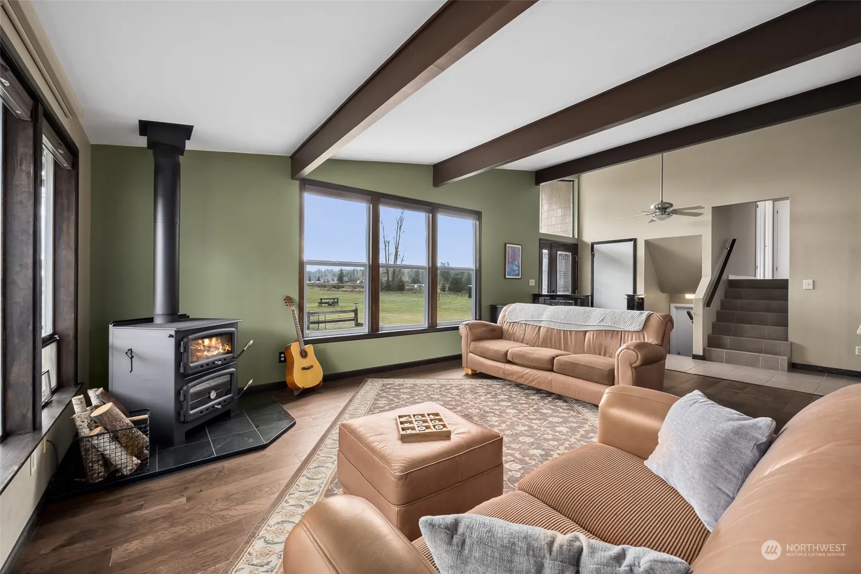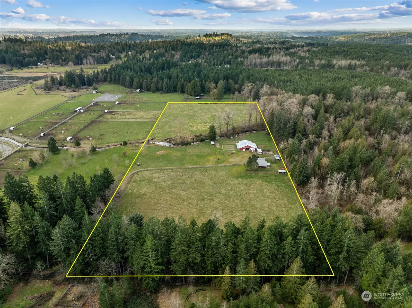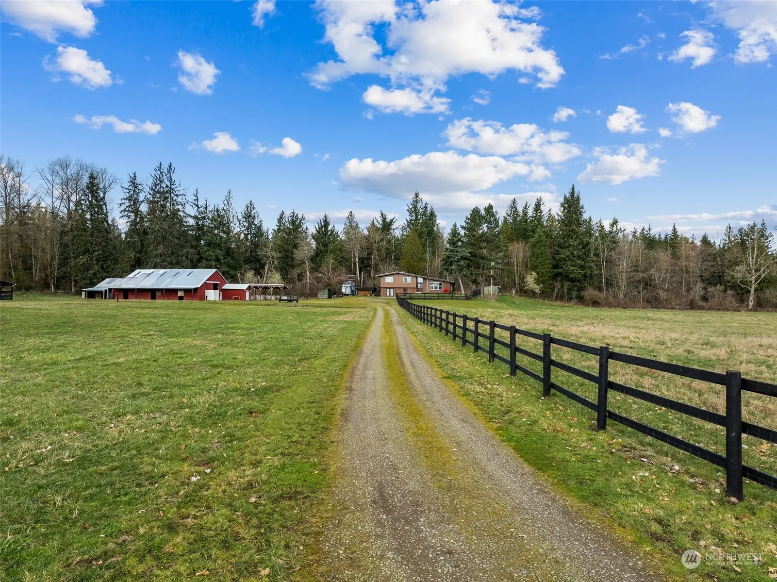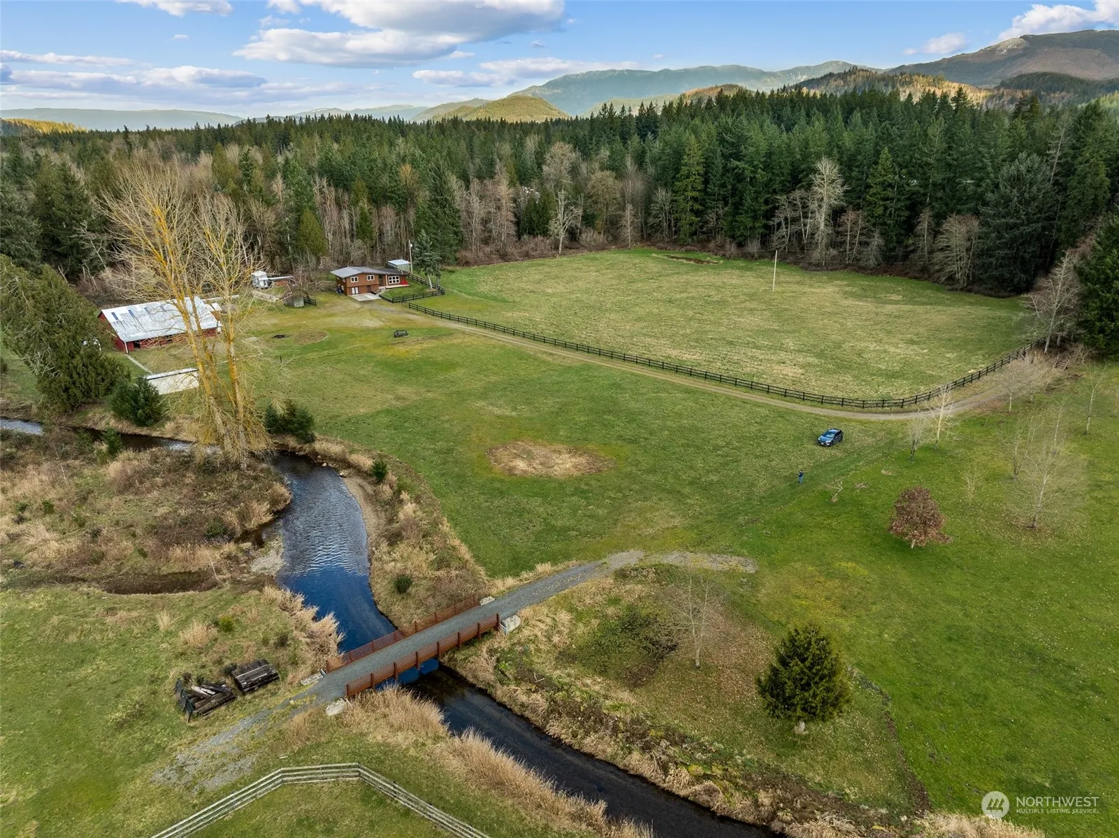 Welcome to your quintessential Enumclaw retreat! Set on 20 acres w/ stunning Mt. Rainier views, this property offers the ultimate blend of natural beauty and functionality. A charming bridge spans Coal Creek, adding to the allure of this idyllic sanctuary. The 2420 sq. ft home, featuring 3 beds, 2.75 baths, showcases recent updates including new flooring, windows, siding, paint, and a metal roof. Downstairs potential for a mother-in-law suite or 4th bedroom and bonus room. The barn, w/ 8 stalls, a tack room, and dry paddocks, coupled with extensive pastures, caters to all your equine needs. The included tiny home creates endless opportunities. Don’t miss out on this rare opportunity to own a slice of Enumclaw paradise.