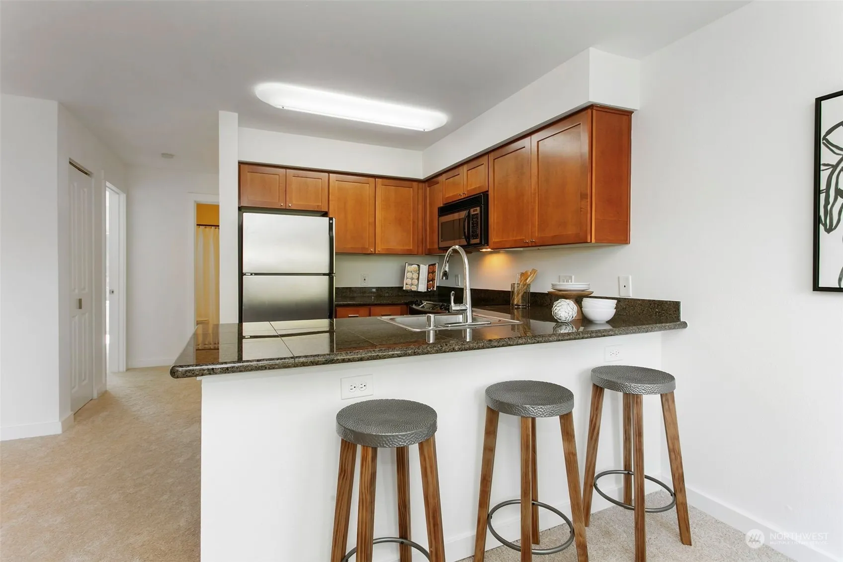 [ LOCATION, LOCATION, LOCATION! ] Welcome to the Front9 Condos in the Harbour Pointe neighborhood of Mukilteo. This 2nd floor 1-story unit features new carpet, fresh paint, updated kitchen & bathroom. From the open-concept living/dining you have a beautiful view overlooking the golf course, one of the best views in the complex! Unit also features a private patio with storage & 1 uncovered parking space just a few steps from the building. Front9 has amazing amenities – indoor & outdoor pools, fitness center, basketball court, hot tub, sauna, & bbq picnic area. Low HOA dues cover water, sewer, and garbage. Just minutes away to Boeing, Paine Field, & all the spectacular offerings of the Mukilteo waterfront. No Rental Cap.