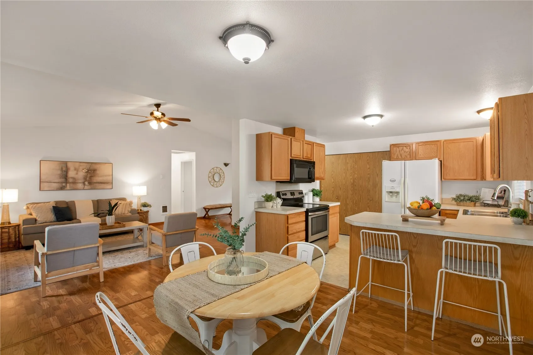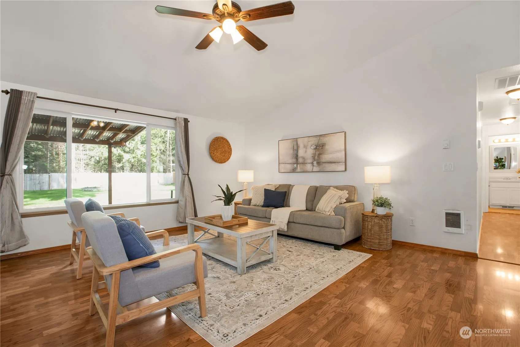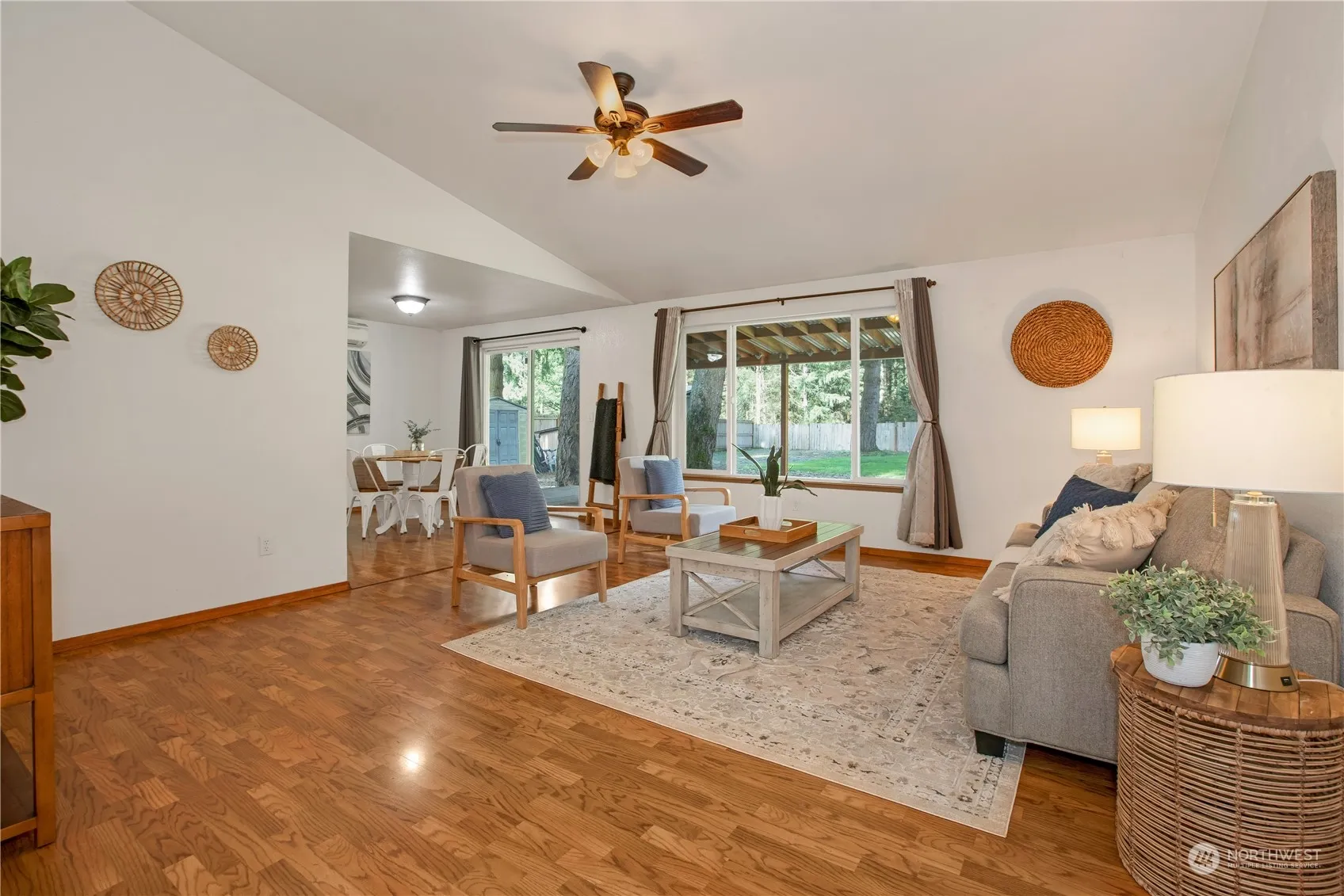 Beautiful Rambler style home w/expansive yard located in Rochester! This sturdy residence optimizes living area w/its airy layout, featuring a welcoming eat-in kitchen & soaring vaulted ceilings. Down the hallway you will find the spacious primary bedroom w/an attached full bathroom, ceiling fan & ample closet space, 2 additional bedrooms & full bathroom. Enjoy year-round comfort w/both ductless mini-split & forced air furnace w/heat pump & central AC. Outside is the copious sized covered deck, fully fenced private backyard w/plenty of garden space & no visible neighbors behind you. A drive-thru gate allows easy RV access. Has convenient storage sheds & big toy stays. Located just off I-5 & only 20 minutes from Tumwater.