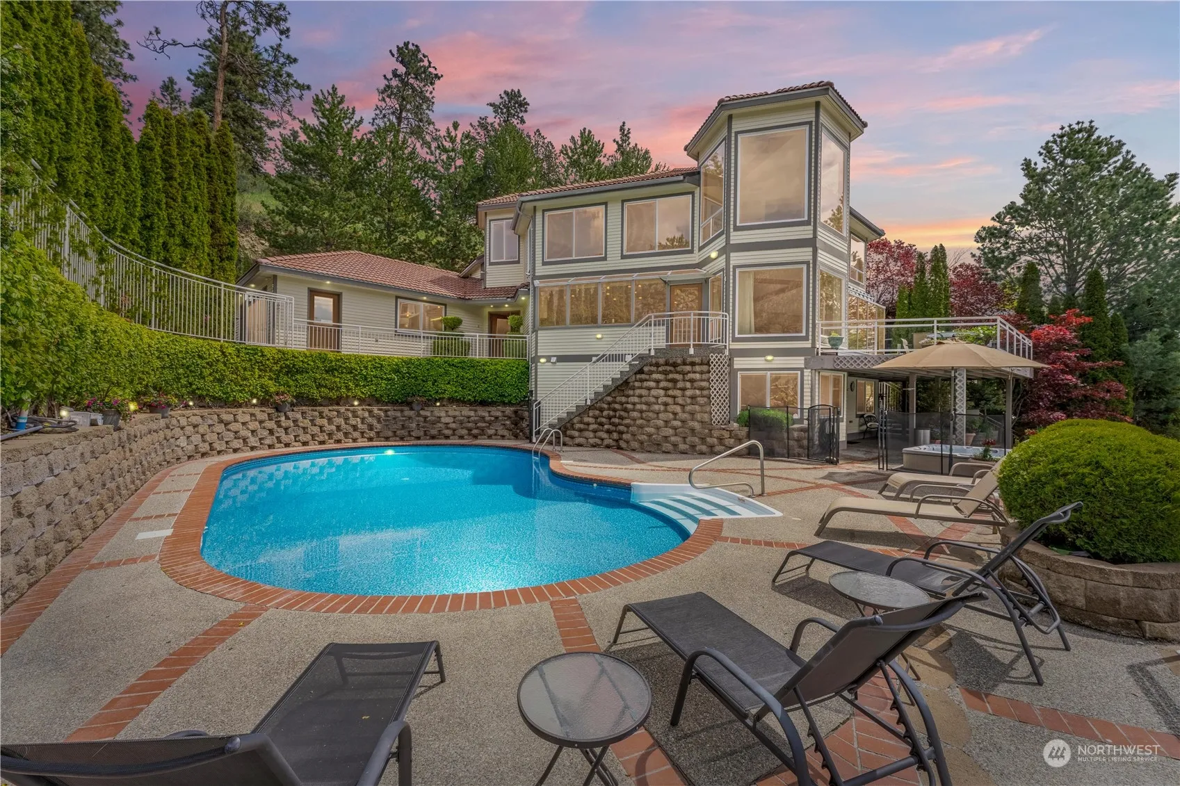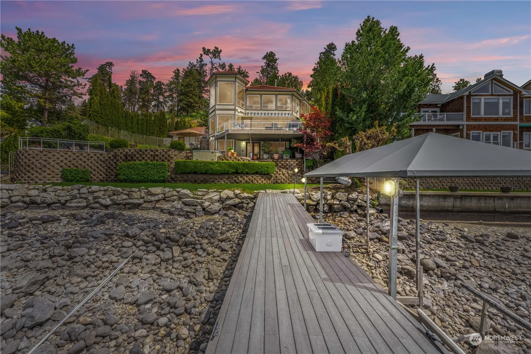 Unrivaled Northshore Estate w/ 97′ of Low-Bank bulkhead Waterfront: this 2-story home w/ a daylight basement provides sophisticated engineering & architecture design throughout the interior & exterior flow. Offering ultimate privacy and space w/ 3b/3baths, 3,690sqft, an exercise room (or office), an entertainment great room & gourmet kitchen, recroom, bunkroom, & timeless library. Outside, enjoy a massive sun deck off the greatroom, or take the staircase to the generous & protected pool and patio area w/ hottub overlooking endless views of the lake. At the waterfront appreciate the mature landscaping and best yet a dock w/ a powered boat lift & cover + a power jetski lift, & a buoy for your friends.