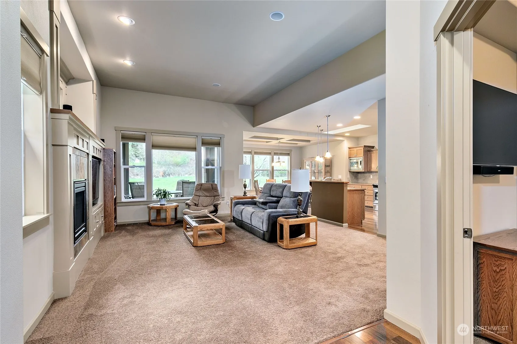 What a wonderful craftsman style townhome 1 story with very spacious floor plan custom blinds. Large open kitchen living room cozy propane fireplace, large TV,living room with surround sound and ceiling speakers. Dining area with large, steps out to covered patio to enjoy views of greenbelt area with seasonal changes, wildlife for your viewing. Private very roomy primary suite with large bath offering jetted tub, separate shower large walk-in closet. 2nd bed and office/hobby room Sunland community HOA is $350 annually to enjoy amenities such as pickleball/tennis courts, pool, RV parking, clubhouse Sunland North HOA is $1,048 per quarter & covers exterior maintenance & insurance plus yard, road & common area maintenance.