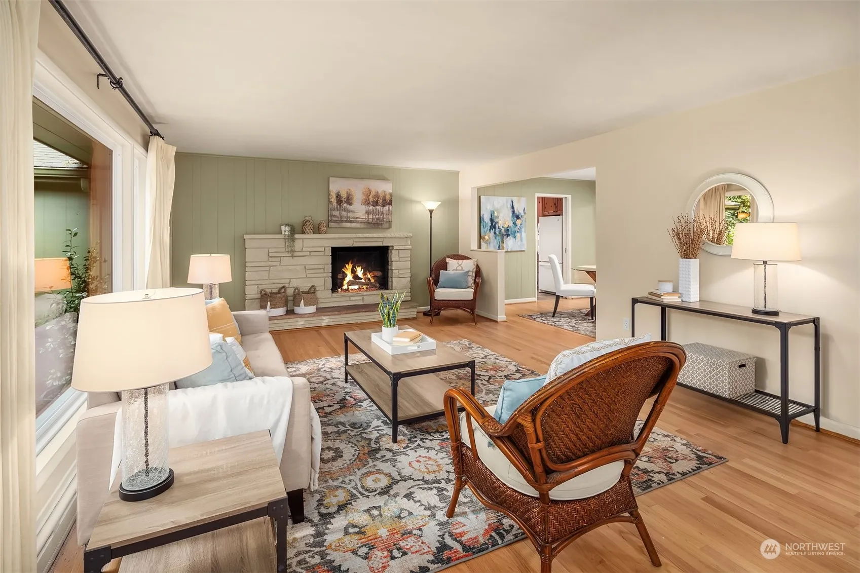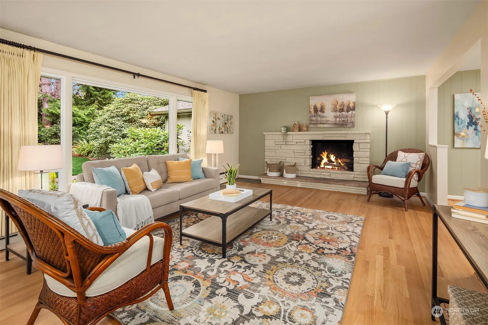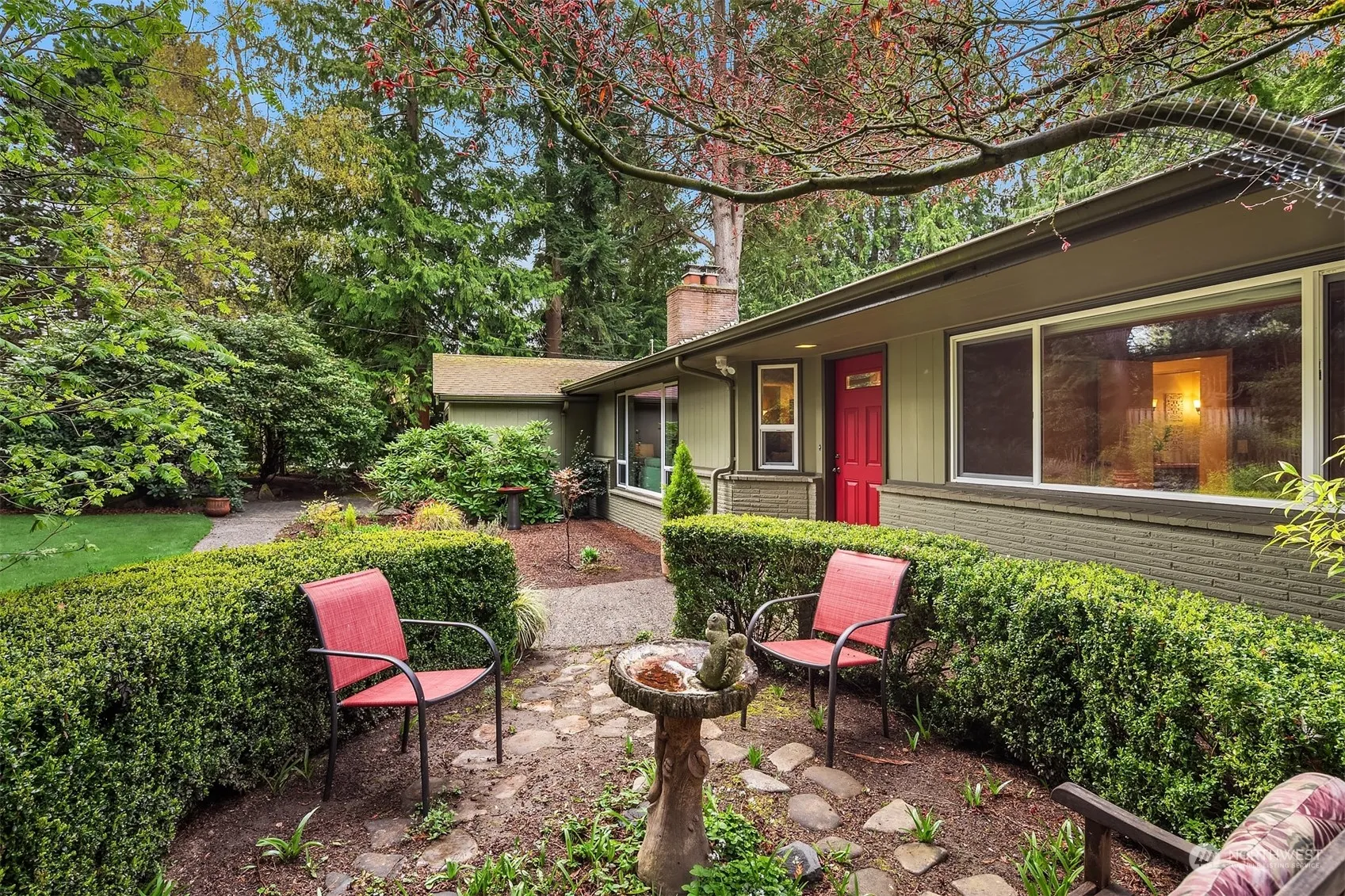 Enchanting, idyllic NW setting for this charming mid-century rambler, where privacy abounds! Spacious living & dining rooms boast newly refinished hardwood floors & a brick fireplace. Updated kitchen has new stove, tile countertops, backsplash & tile floor. Family room features a cozy woodstove, .75 bath & French doors leading out to the cobblestone patio and front yard. Enjoy outdoor entertaining as the weather warms up! Detached 2 car garage has plenty of storage space. Yost Park is literally across the street, perfect for hiking trails, tennis or swimming at the year round pool. Enjoy downtown Edmonds with its vibrant food and art scene. Excellent Edmonds schools, beachfront, ferry and Amtrack/Sounder stations are close by. Welcome home!