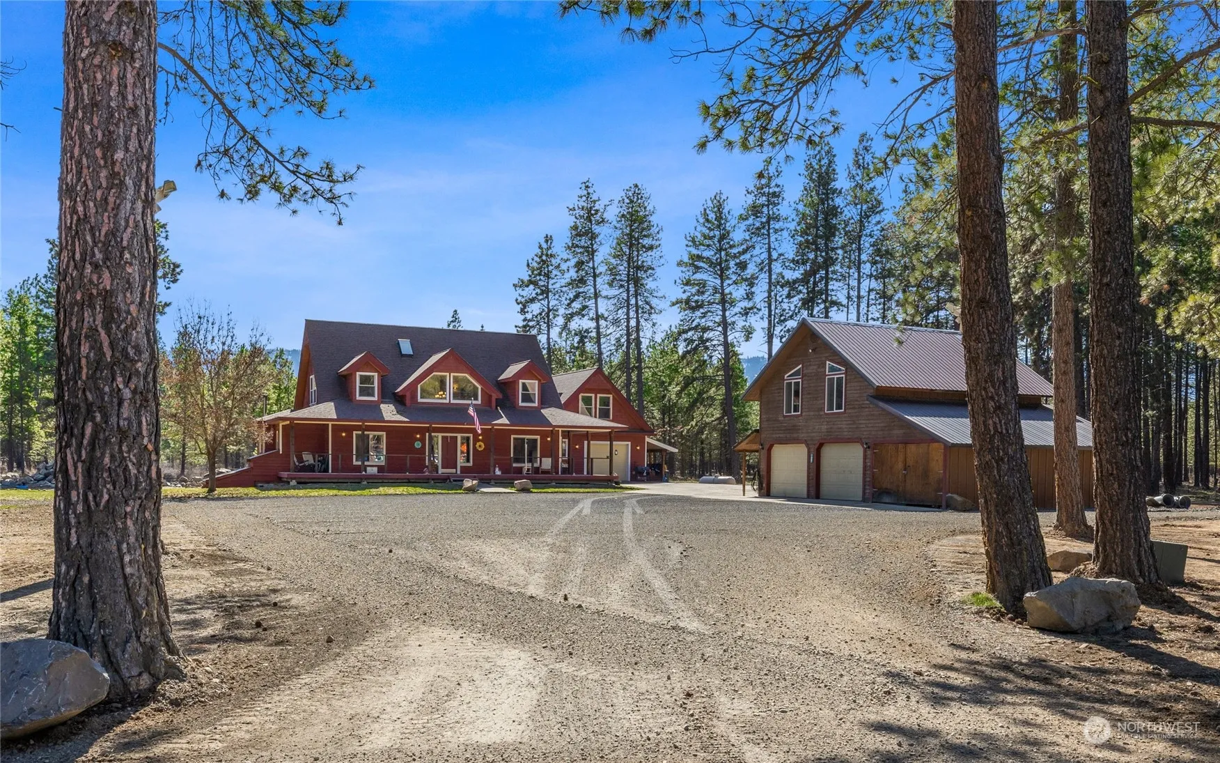 [Serene Cle Elum Escape]This exquisite Craftsman-style home boasts high ceilings and ample natural light, creating a bright and inviting atmosphere. With 4 beds, 3 baths, office space and basement rec room, the home offers plenty of room for both relaxation and productivity. Situated on a sprawling 10-acres, the property is the perfect blend of privacy and convenience just minutes from Downtown Cle Elum. The level terrain is adorned with majestic trees, providing a picturesque backdrop for outdoor activities and gatherings. Bring your vision to life, No CCR’s. For additional space and flexibility, a 30×26 detached shop with 780 sq ft guest quarters awaits. Ideal for guests, hosting or pursuing hobbies and projects.