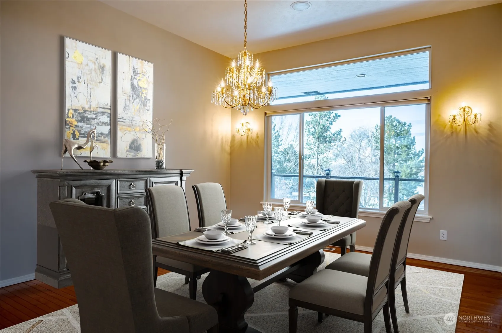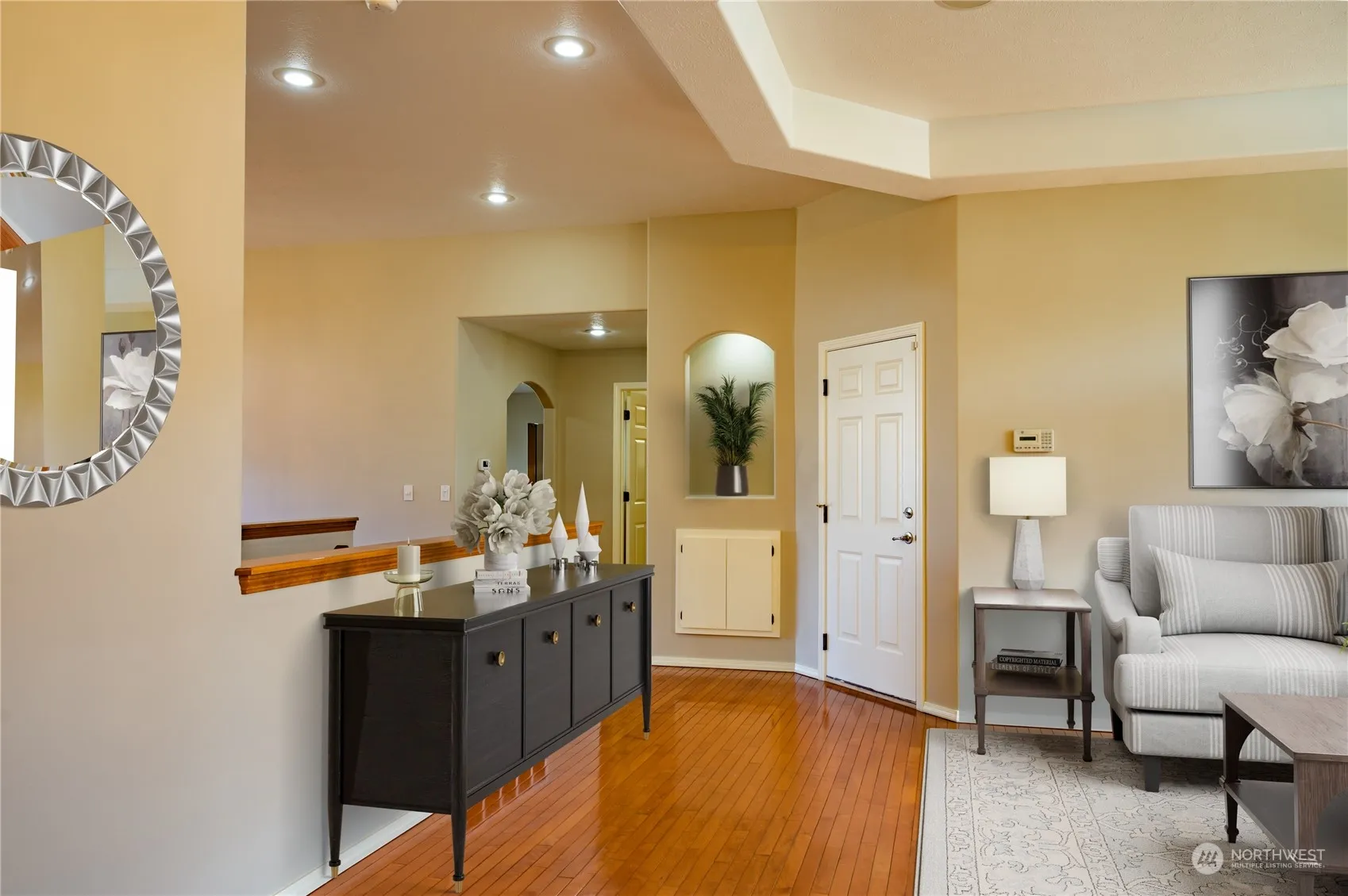 This Daylight Rancher features 5 bedrooms, 3 bathrooms, high ceilings, custom cabinetry, stone countertops, and hardwood floors. Meticulously maintained with new interior & exterior paint, carpeting, and updated appliances make this home feel like new! The Kitchen includes lots of cabinetry and countertops, a walk-in pantry, an eating area, eating bar, and a large adjoining Dining Room. The spacious Primary Suite features a big walk-in closet, double sinks, a jetted tub, and a separate shower. The Lower Level includes a 2nd Family Room with a covered patio and a storage room. The deck includes a gas bbq and a motorized awning for outdoor relaxation, come rain or shine. Glenngrae residents enjoy lawn care, snow removal, and a community pool.