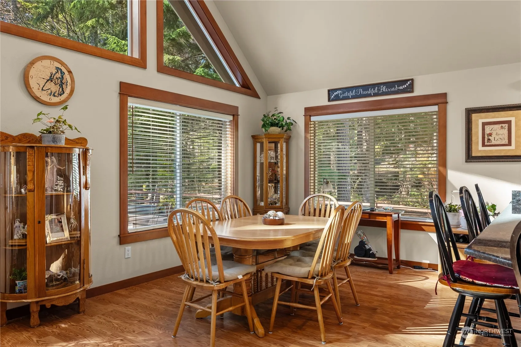 Discover lake living at its finest in this stunning custom home at Lake Cushman. With a prime location near the boat launch, this property features a main-level primary suite, vaulted ceilings, a wall of windows for natural light, and spacious kitchen w/ granite counters & solid wood cabinetry. The upper level boasts an oversized bedroom, large office, and a loft/flex space. The garage is a car lover’s dream offering 3-car parking, 1/2 bath, and a large storage room. The backyard is an outdoor entertainer’s paradise w/ covered gazebo, firepit, multiple outbuildings, and a large shop for covered RV parking. There’s even a guest house w/ full amenities! Embrace the perfect blend of luxury and outdoor adventure with this charming lake retreat.