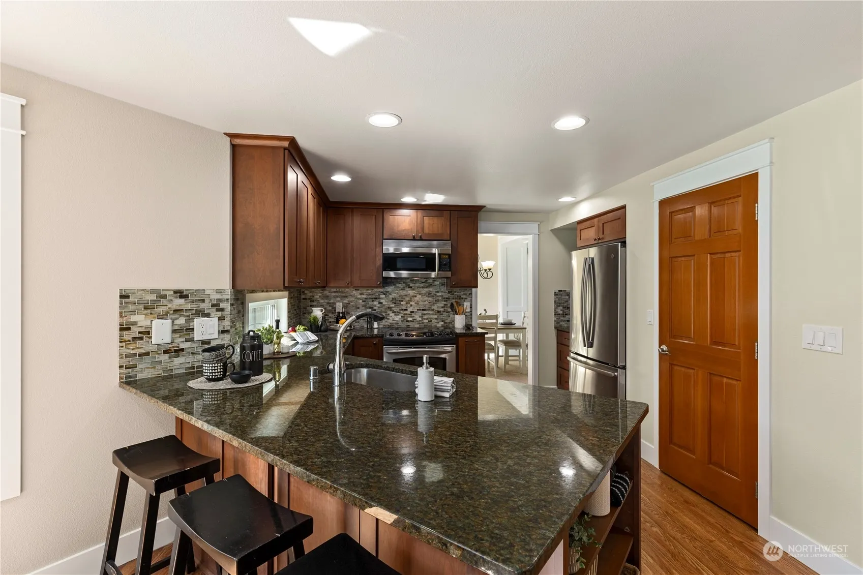 Situated in the coveted Audubon Ridge neighborhood of Klahanie, this home is waiting for you! Soaring ceilings greet you in the living room/dining flowing into the remodeled kitchen w/SS appliances, lots of storage, eating bar, breakfast nook & walk in pantry. Enjoy the warmth of the family room w/stone gas fireplace & custom built ins. Retreat to your spacious primary suite & remodeled bathroom w/oversized shower & walk in closet. New interior & exterior paint, refinished hardwoods, new furnace, update trim & molding, newer windows, roof & gutters, delight in your private outdoor oasis w/covered patio, deck & spacious fenced yard, enjoy community pools, parks, trails, lake & sport courts, Issaquah School District, close to I-90.