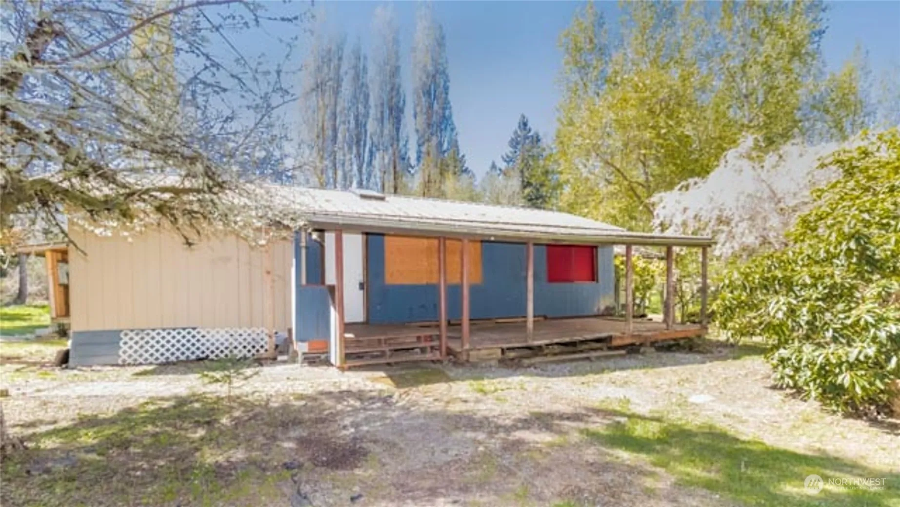 Instant equity opportunity! This gorgeous park-like 2.5 acres is awesome! Tons of potential to remodel the structures and get some instant equity. Main home features 2 bedrooms and a .75 bath (can remodel 2nd bathroom back in – approved for 3 bdrms). 1312 SF of open living space with vaulted ceiling, large kitchen space and light and bright rec-room. 1-car garage with large workspace, 3 separate storages building with tons of storage space including one on slab at back of property. So much potential. Please do not enter property without appointment. Estate sale sold As Is.