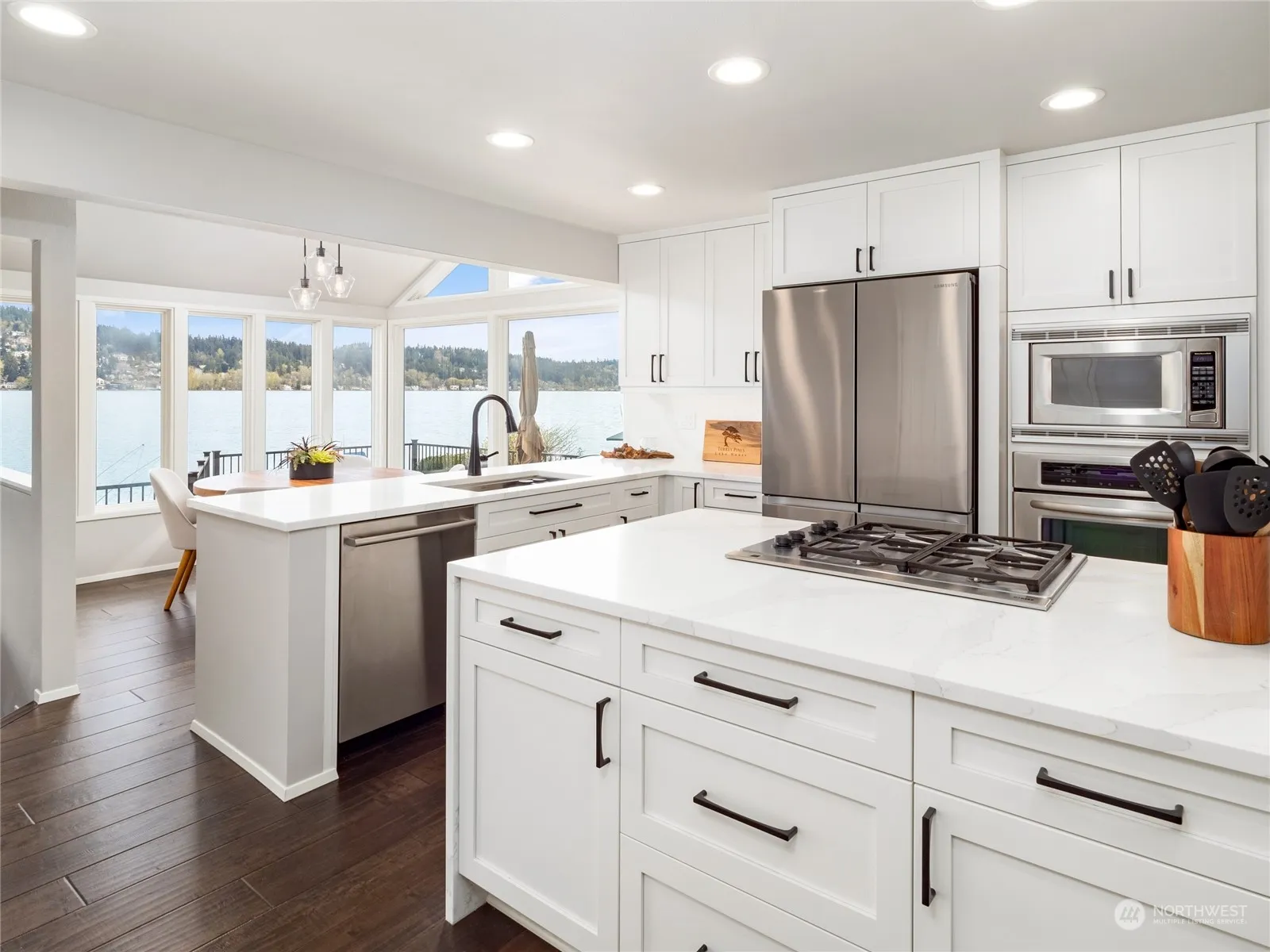 Stunning Lake Sammamish home just in time for boating season! Perfectly sited to feel like you’re right on top of the lake while still having a beautiful, flat, yard area and extensive dock with 7,000lb boat lift. Nearly every room captures inspiring views that include Mt. Rainier, wildlife, and breathtaking sunrises and sunsets on the horizon. Open main floor can entertain large groups while still being comfortable and cozy when not. Outdoor elevator allows for ultimate in privacy and security away from the main road. Detached lounge/office that can double as a guest apartment is perfect for those working from home that want separation. Oversized garage with extra guest parking. Award winning Bennett elementary and mins to MSFT campus.