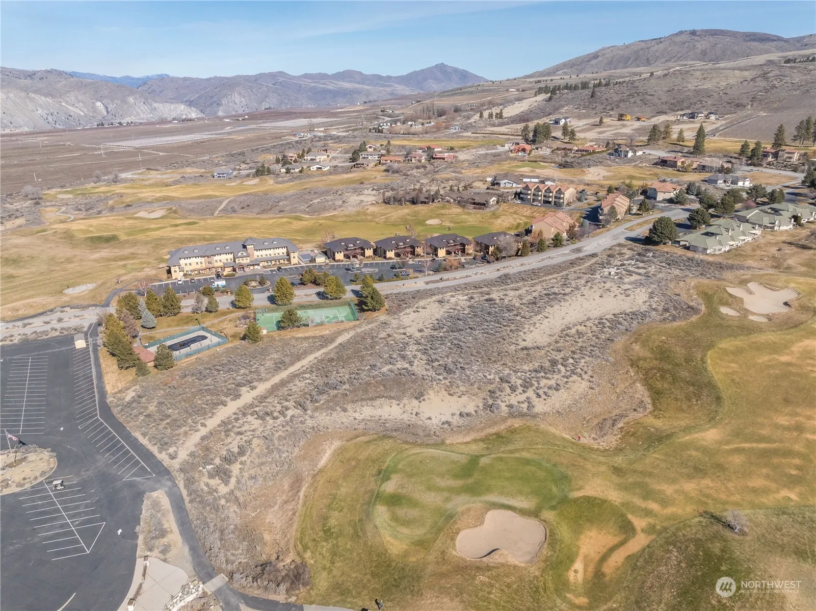 3.41 acres with approximately 800 feet 9th fairway & green frontage. Located adjacent to the community pool, tennis court, club house and Oasis restaurant. Permits issued in mid-90’s for 18 condominium units in 4-buildings on a portion of the site with 3-foundations installed prior to development ending (see photo’s). Discussion with Douglas County Planning indicates this project can be completed. Contact Broker for Details. *Water connection now available*.