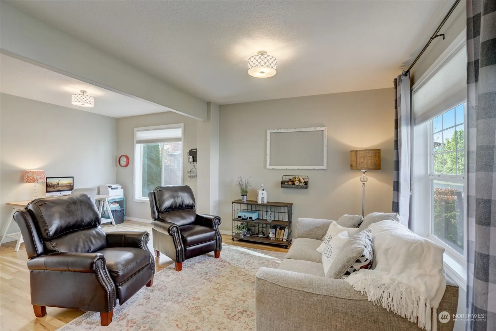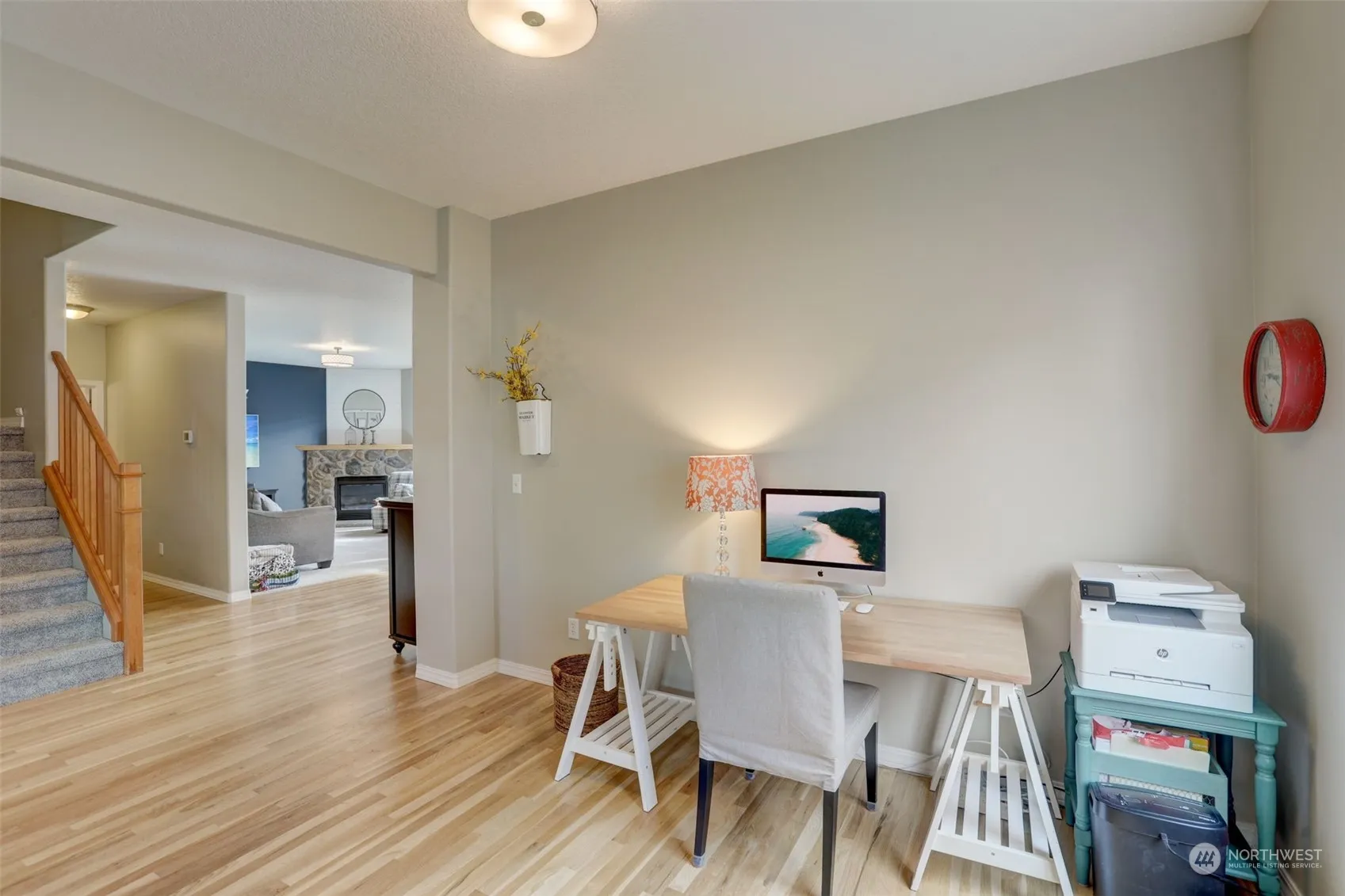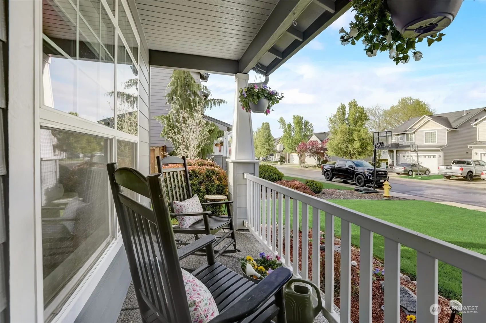 This charming property offers a warm welcome with its covered front porch. Entry with shiplap accent wall, transom and clerestory windows and soaring ceiling, all complemented by beautiful hardwood flooring. Formal living and dining rooms. The family room with cornered stone surround gas fireplace. Gourmet island/eat bar stainless kitchen with granite counters, subway tile, hickory cabinetry and walk-in pantry. Dining area with bay window slider to patio. French door entry to primary en-suite with ceiling fan, vaulted ceiling, walk-in closet, dual sink vanity, soak tub and shower. Three additional bedrooms, in possible bonus roo. Laundry room wtih built-ins. Enjoy the covered porch, patio, hot tub, shed and landscaped yard.