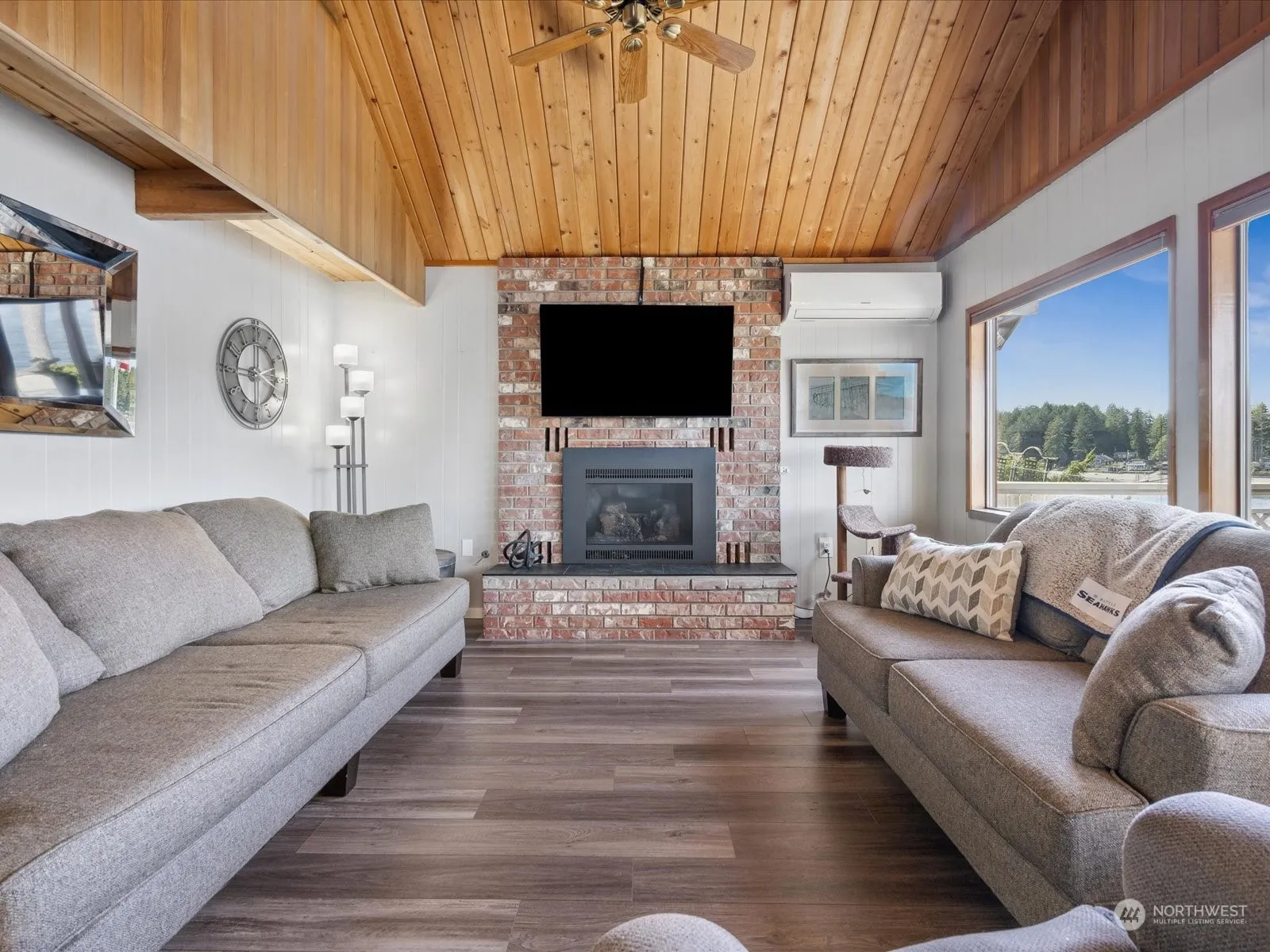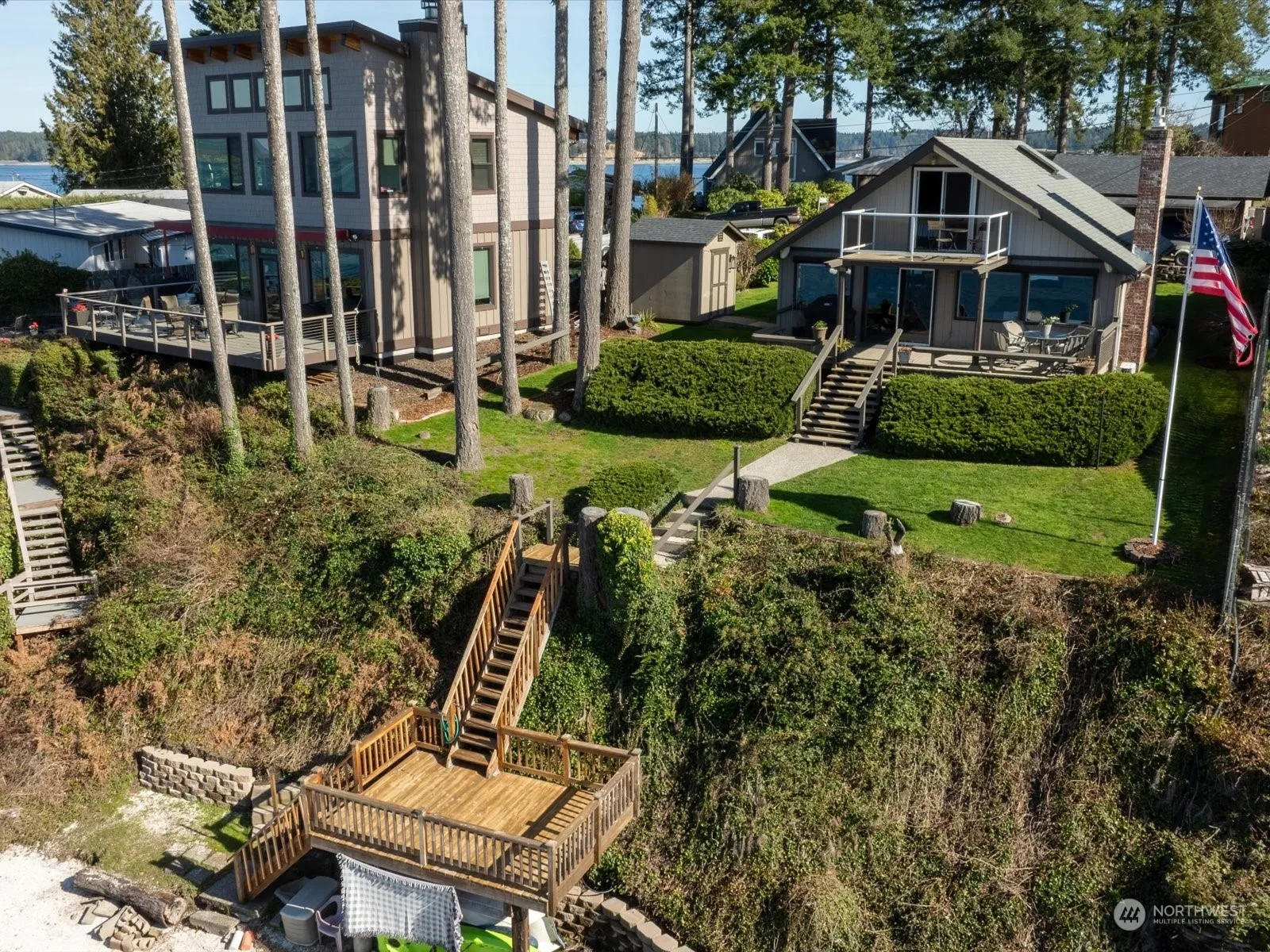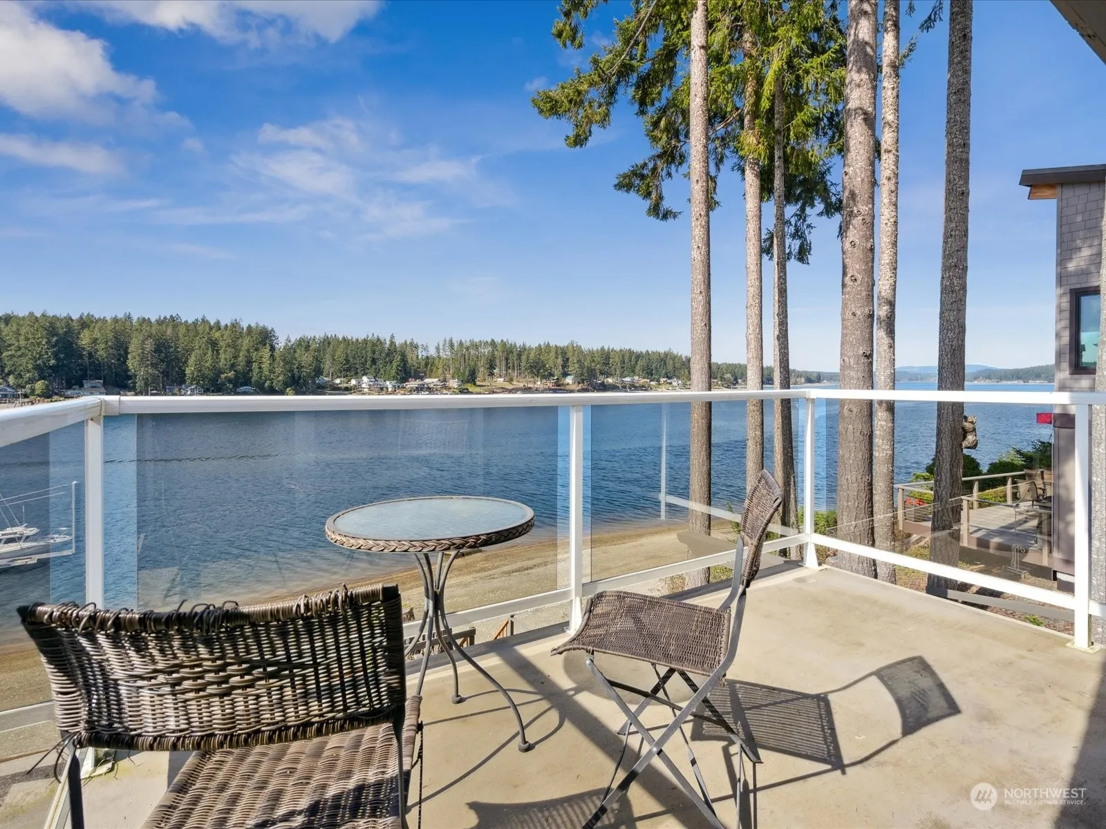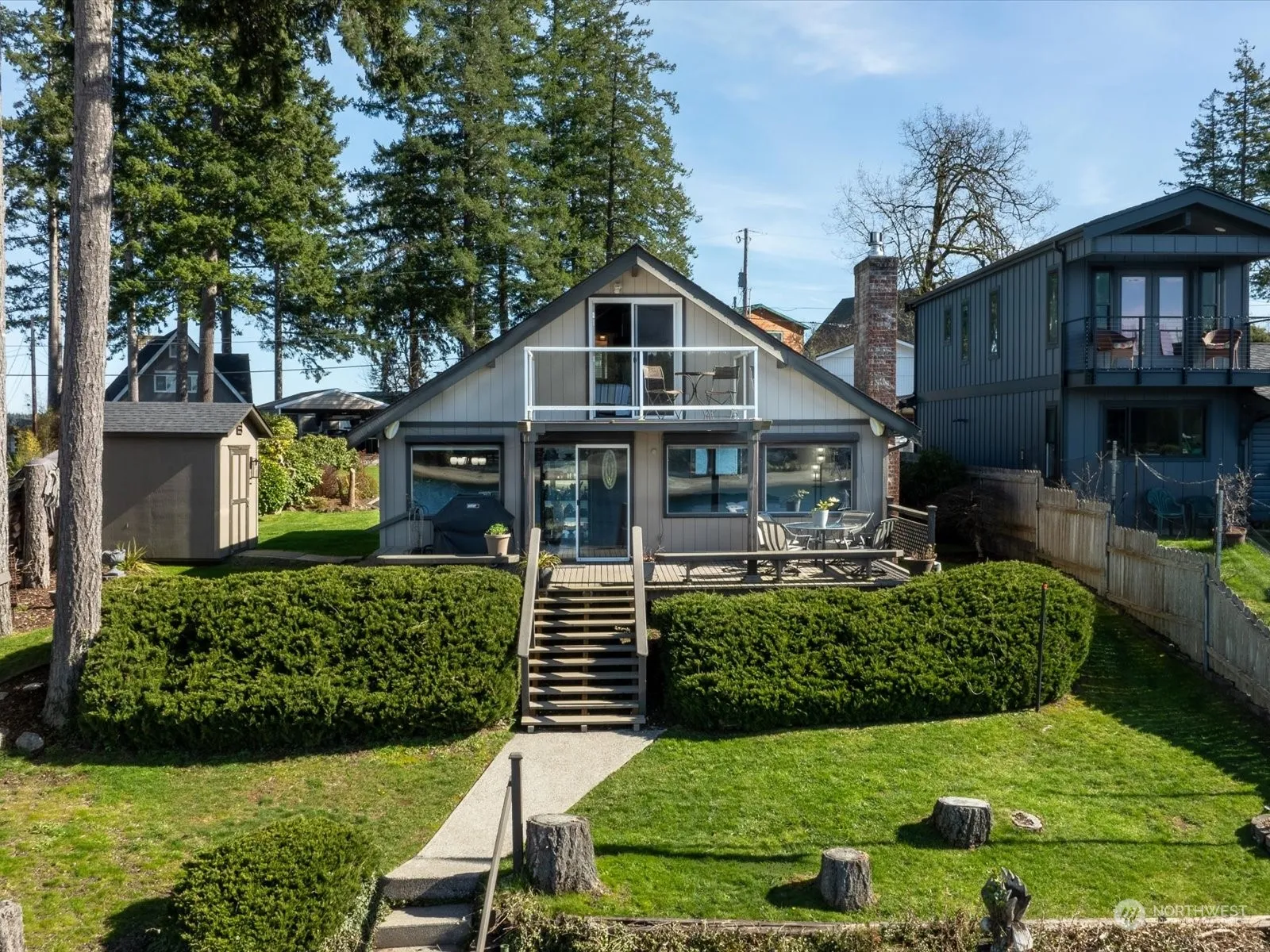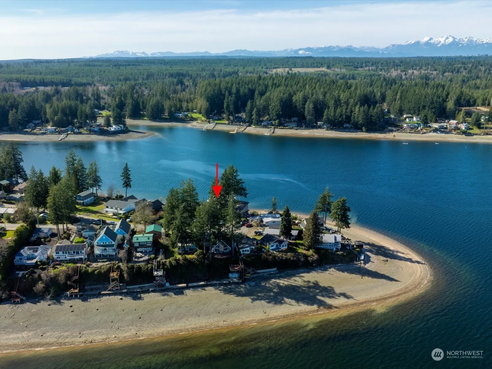 “Treasure Island.” The beach to make lasting memories. Fantastic sunsets, your deep waterfront is a gently sloped beach with tidelands. Home has been tastefully updated, two bedrooms a bath and a half. Newer kitchen, Stainless steel appliances, new counters, dining area, open concept living. Updated Baths with Walk-in tile shower. Heating system keeps you comfortably warm and cool. Masonry fireplace w/gas heat. Newer Efficient windows, Ceiling Fans, Skylights, real wood throughout, a classic and open to views. Loft with French doors, balcony with viewing deck. Large, finished garage with workshop, storage and attached carport for extras. Paved, Ample level Parking. Come walk the Island, enjoy Community, w/ Boat dock. Marina & Launch nearby.