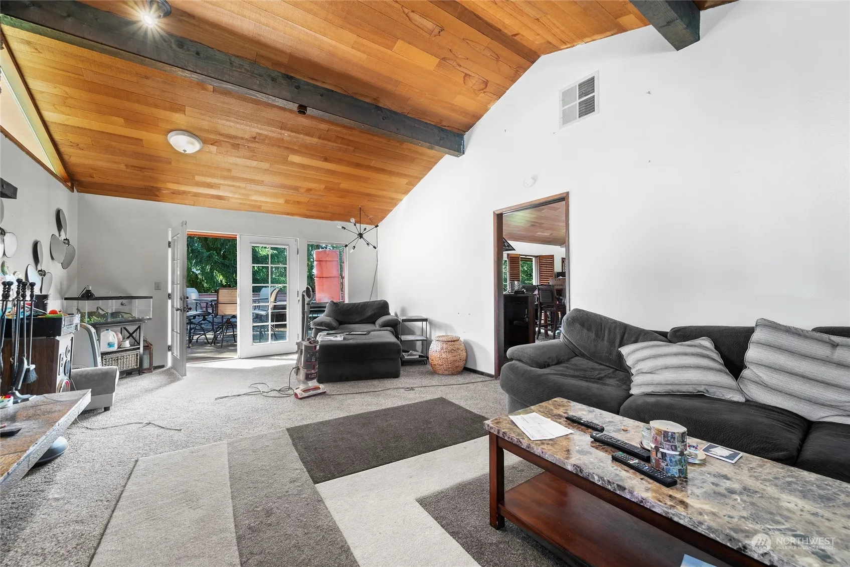 ESTATE SALE Priced to sell as-is! OPPORTUNITY AWAITS w/ this HUGE 4 ACRE property in the HIGHLY DESIRABLE CLEARVIEW AREA! 2,466 sqft home features 2 separate living areas split between upper & lower level. Upper level has spacious living area w/ custom rock mantle for wood fireplace. French doors off dining room lead to a large deck great for entertaining. Primary suite & 2 additional bedrooms on main. Lower level w/ separate kitchen & eating area along w/ another bedroom and living area. Garage has been converted & fully finished to two separate living areas as well w/ separate kitchens. Large stunning pond in the corner of the property. Huge shop out back. Nothing wrong w/ property, just has some deferred maintenance. Must see in person!