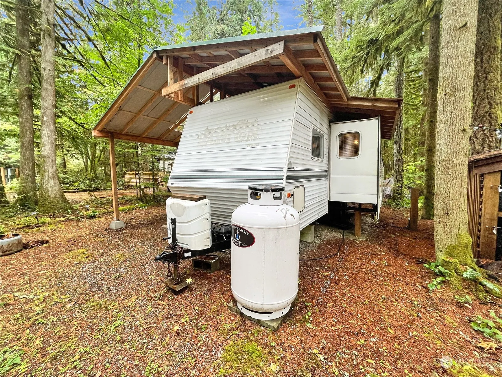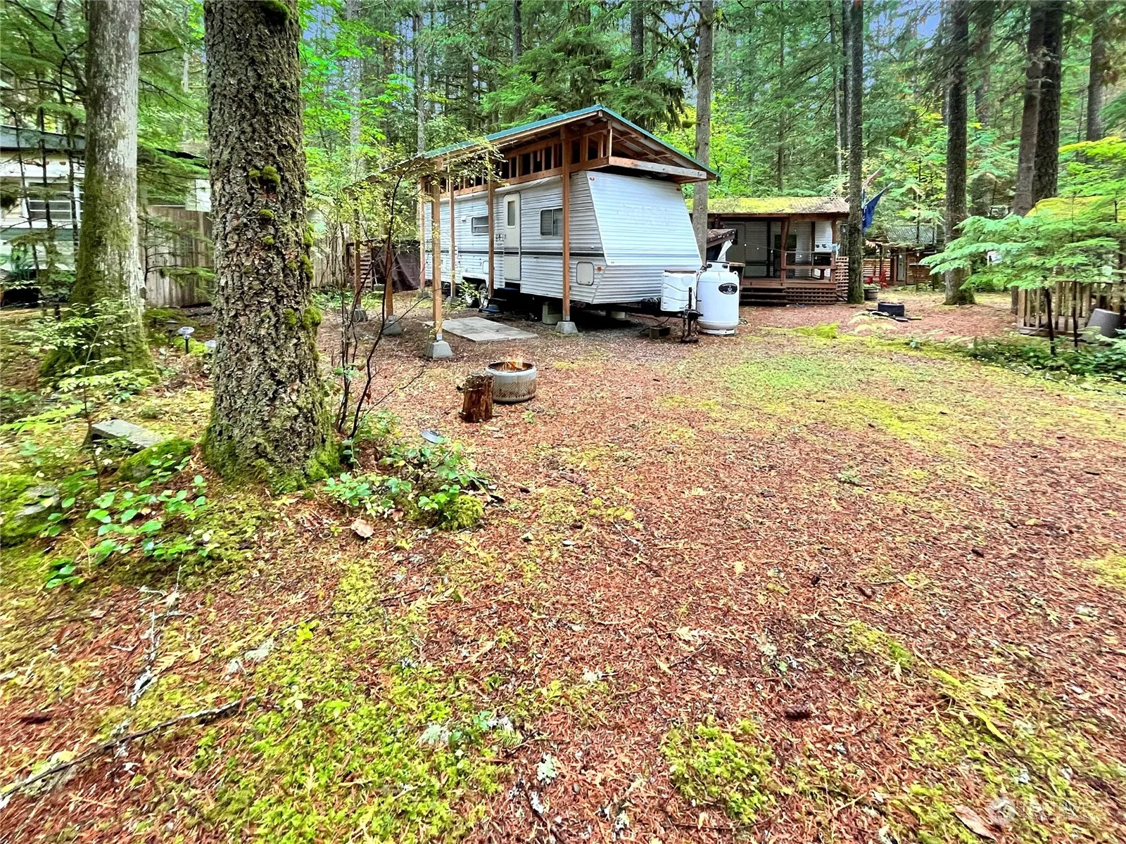 Great opportunity to get started at the Glen with this 2001 Layton trailer that sleeps 6. Large metal auxiliary roof protects the trailer & creates space for year-round outdoor enjoyment. Includes a storage shed for extras and a wood shed to keep the firewood dry and ready to go! Full bathroom, a bed and bunk beds, plus additional convertible sleeping spaces keep it comfy for everyone. When you’re ready to expand, add on or easily replace the trailer. Just 15 minutes from the base of Mount Baker as well as Silver Lake. The Glen amenities include two pools, a sauna, hot tub, basketball & tennis courts, two lodges, events & activities, 24/7 security and more. Zoned recreational limited to 120/nights per year occupancy. No rentals allowed.