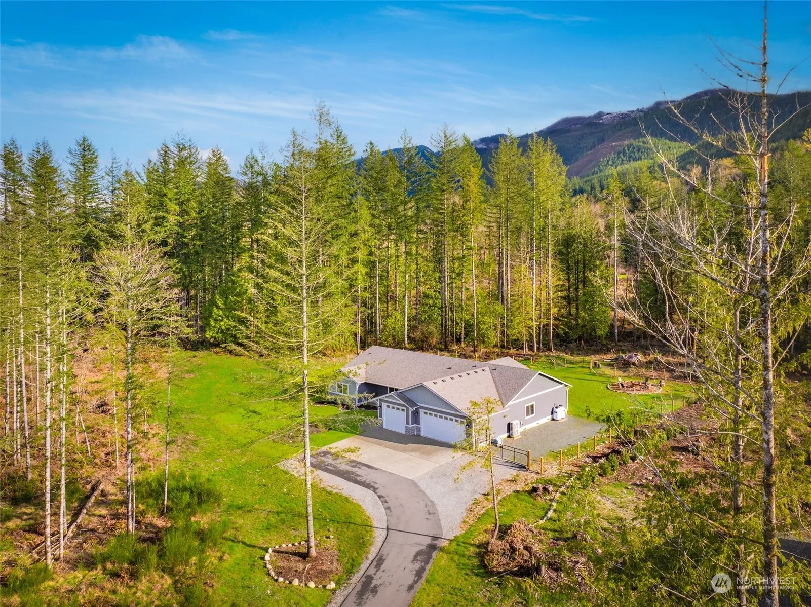 This stunning, like-new rambler is nestled on five acres & invites you to experience unrivaled tranquility. The home boasts impressive essentials and meticulous upgrades–a heat pump, a generator, beautiful LVP flooring, an oversized three-car garage, and more. Intentional architectural details in the great room create an unforgettable, naturally-lit entertaining space. The gourmet kitchen has an oversized centerpiece island & high-end stainless steel appliances. The ensuite in the spacious main bedroom features a luxurious walk-in shower. For effortless indoor-to-outdoor living, relax year-round on the covered deck. Best of all, the property is less than 30min from Downtown Monroe, Snohomish, & Duvall & moments from outdoor recreation!