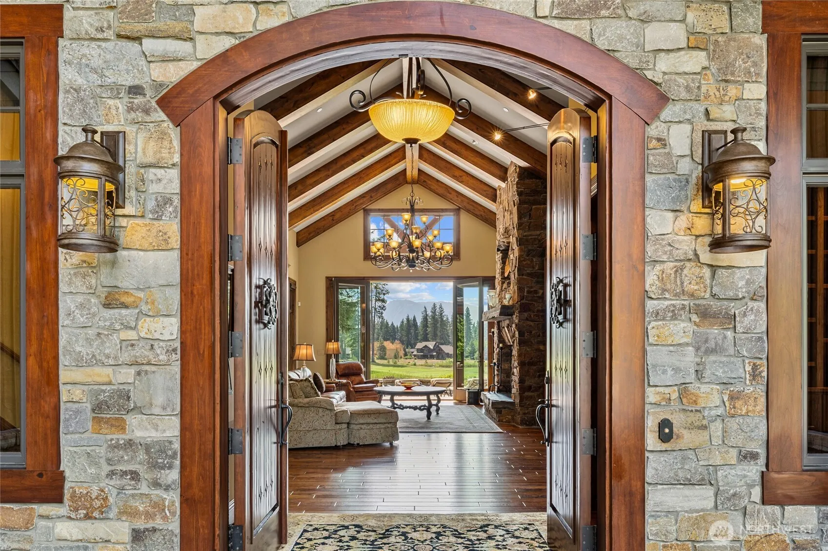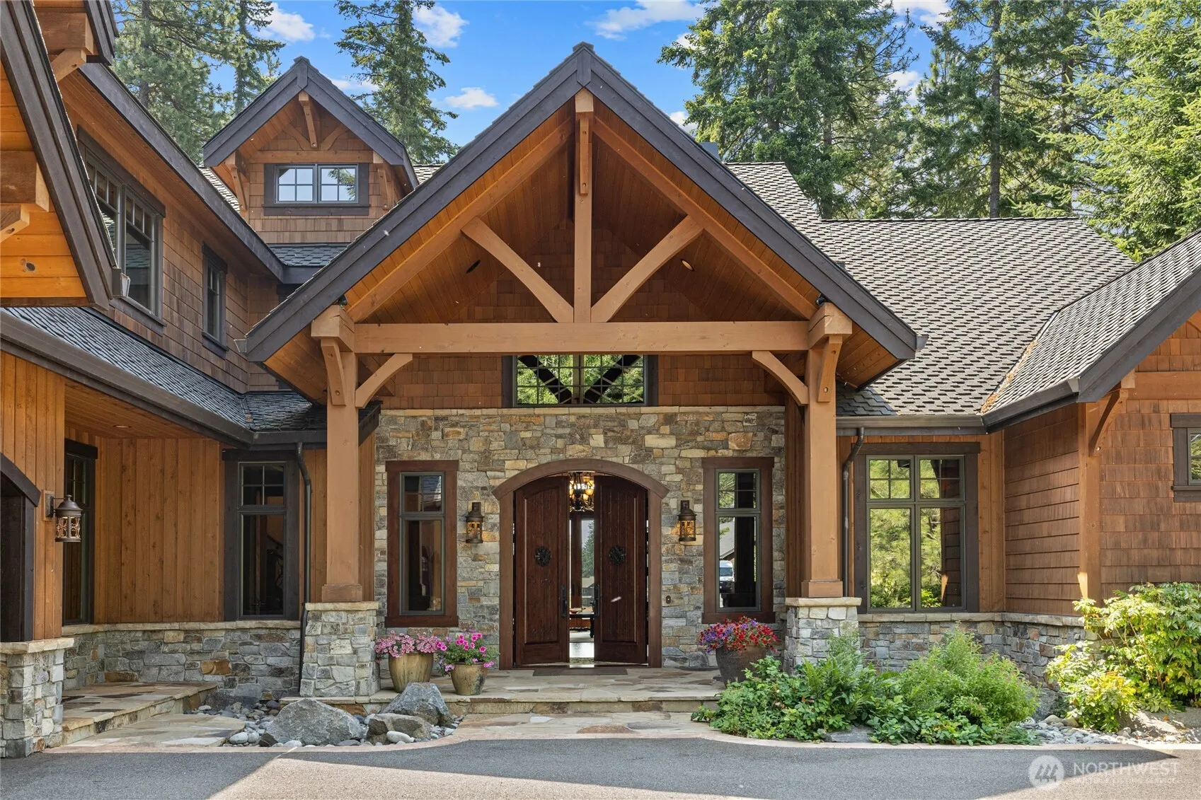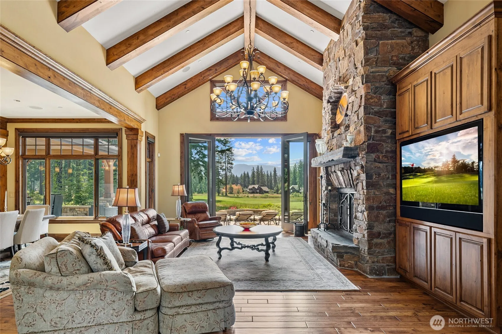 Experience elevated mountain living in this stunning Suncadia home w/a magnificent view of Peoh Point & Rope Rider Golf Course (5&6). This beautifully crafted home offers the perfect blend of luxury, comfort, & functionality. The great room impresses w/soaring vaulted ceilings, a striking stone fireplace & rich Shamrock Hickory hardwood flooring. The spacious main-floor primary ensuite feat. an incredible custom shower, elegant clawfoot soaking tub & premium finishes. Culinary enthusiasts will love the luxury kitchen, feat. Wolf and Sub-Zero appliances, sleek cabinetry & generous workspace. Finally, Step outside to an entertainer’s paradise, w/expansive back patio & panoramic views that showcase the best of resort living.
