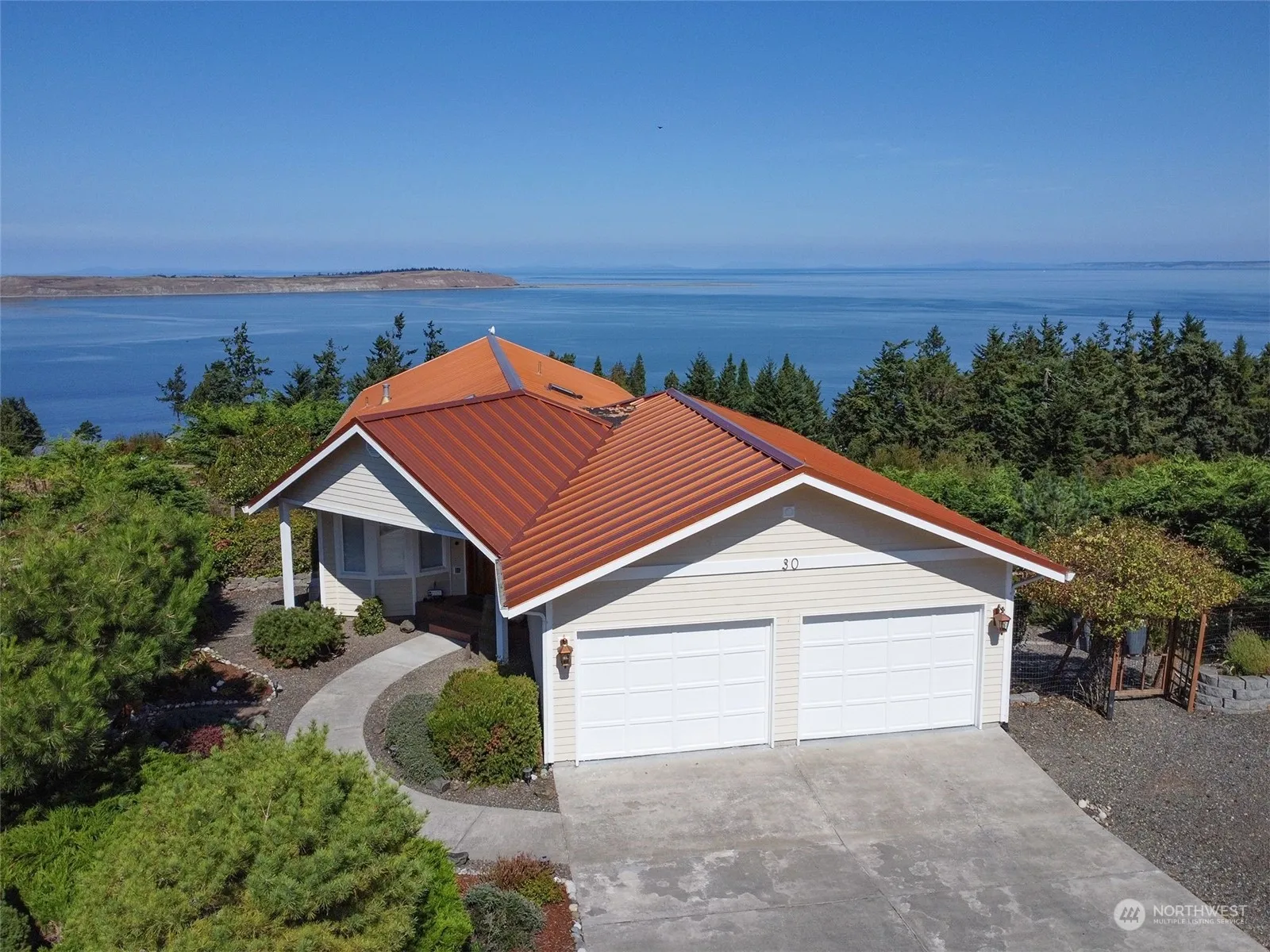 Watch cruise ships head for Alaska, the USS Nimitz return from the Gulf, a bald eagle raise her eaglets, and July 4th fireworks in the San Juan Islands, all from the comfort of your living room! Over 1700 square feet of decks, and a huge vaulted great room with floor to ceiling windows. This 3 bedroom, 3 bath home is designed to maximize the light & soak up those huge views from every room. Large open kitchen w/ plenty of storage, ample guest bedrooms, big primary suite w/ it’s own fireplace, walk-in closet, & huge primary bath. Extra storage throughout & even a convenient shop space under the home. Enjoy the fully fenced, landscaped backyard with groomed pathways, raised beds and a gazebo. This is a must see home!