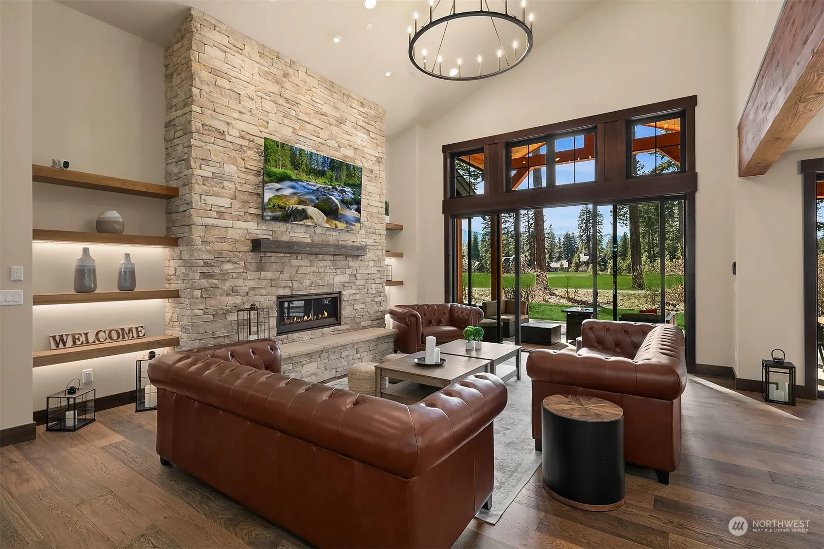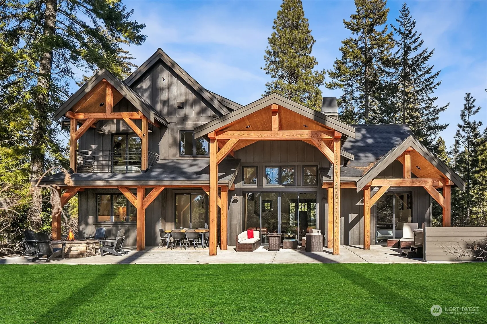 Exceptional & ideally located golf course home nestled just off the 6th green of Rope Rider golf course. Home faces Southwest & is bathed in sun year round w/ sunsets you will love! Walk to Suncadia amenities. Private setting w/ views of ridge. Gourmet kitchen w/Wolf/Subzero; quartz countertops. Fully equipped pantry w/ cabinets, sink & dishwasher. Primary w/ fireplace & patio. 3 ensuite bedrooms overlooking golf course;1 w/ balcony. Expansive outdoor patio w/square fire pit & hot tub ideal for entertaining/BBQ. Rare lower 3rd level. Tiled bathrooms w/ radiant heat. Extensive entertainment room w/ wet bar. 2nd Rec room for extra entertaining . Outstanding Rental Potential/sleeps 20. Furnishings included! Brand New under 700 per sq ft!