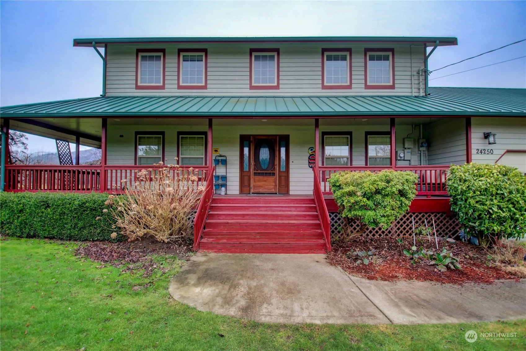 Make this beautiful 40 acres your home, where convenience and natural beauty greet you each day. This captivating 3 bed/2.5 bath 2-story offers breathtaking views of mountains and farmland, seen from the many windows or the wrap-around porch. The kitchen features an island with a SS gas range to enjoy the view or chat with guests, there are 2 breakfast bars, ample, beautiful cabinets, and a SS refrigerator. The living spaces each offer a free-standing stove to add to the warmth and charm of this farmhouse. The finished basement is already plumbed for an additional bathroom to enhance the living space. Outdoors you will find a two-car attached garage, outbuildings for storage, covered parking etc., and a greenhouse. Home has solar power;$8/m
