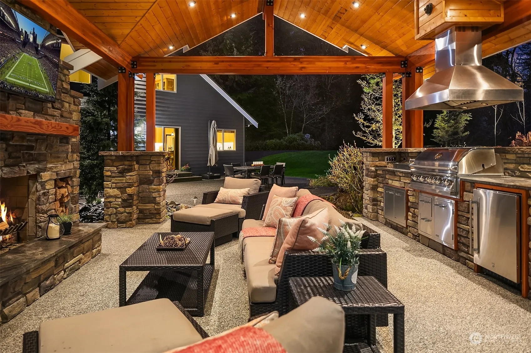 Welcome to Big Rock Estate. A once in a lifetime home that showcases endless upgrades. This Duvall home is an entertainers dream. 3120 sf home serves both luxury & functionality. Main floor primary suite. 3240 sf shop with radiant heat floors offers parking for 10 cars across 3 bays, w/ space for more toys b/w bays. Shop has a 2nd office space & full bath. Upstairs is a 710 sf entertainment haven complete w/ full bar featuring commercial-grade appliances. Expansive outdoor entertainment area w/ 2-sided fireplace & BBQ. Fully fenced, manicured 2.13 acre lot, w/ water feature & 4200 gal koi pond. Control 4 home automation seamlessly integrated into all 3 structures. Circular drive has parking for 20+ cars. Ask for extensive list of upgrades.
