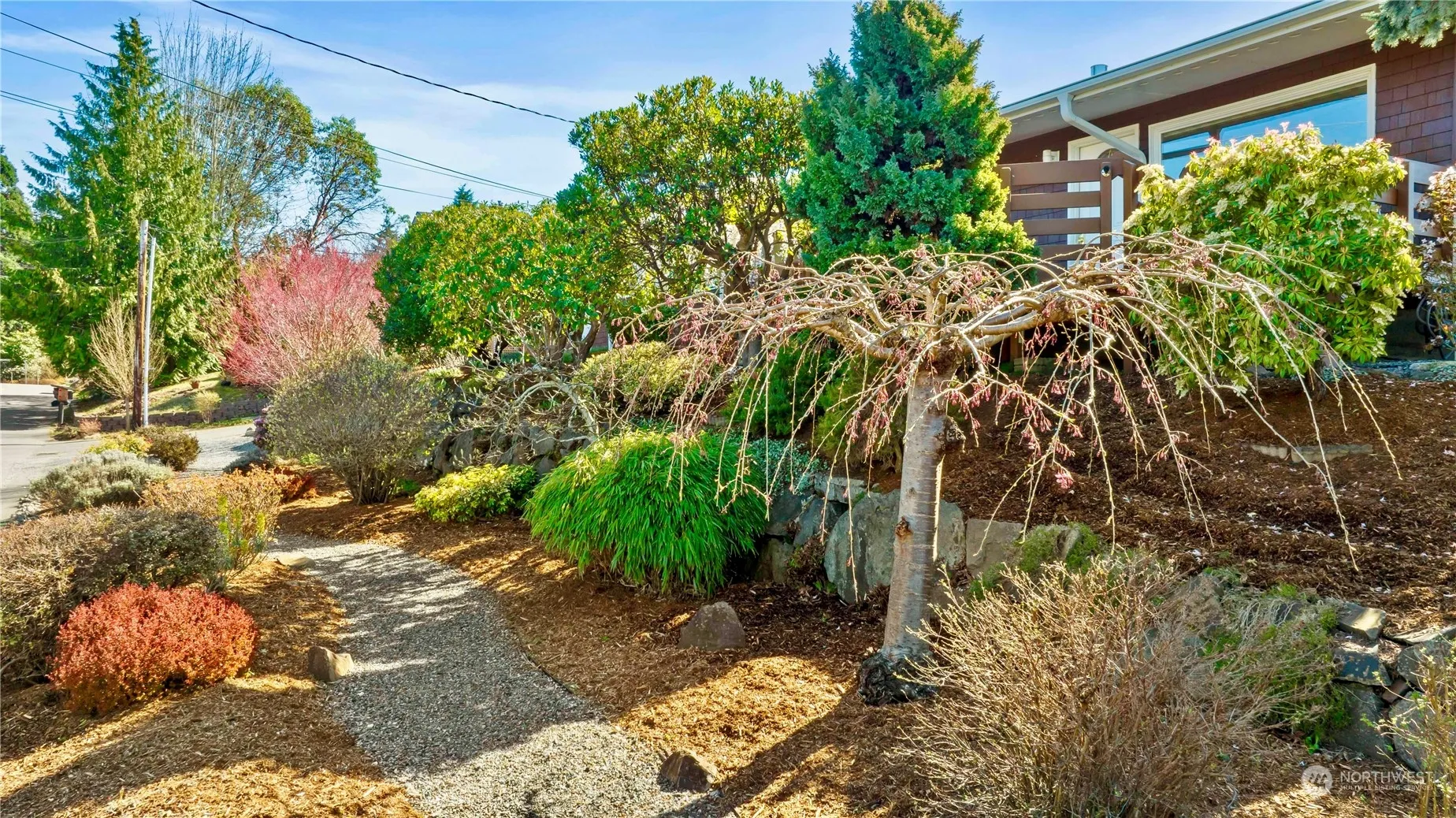 Imagine life in this enchanting single-story home w/ tranquil & breathtaking views of Puget Sound & Olympic Mts, nestled in the lush gardens & parks of coveted Talbot Park in Edmonds! Enjoy nearby Puget Sound, area waterfronts and mere minutes to charming shops, galleries & dining! Open floor plan, flexible spaces. Primary w/ large jetted tub, 3 closets! Murphy Bed/Desk combo! Handsome hardwoods & sustainable Marmoleum. Thoughtful features: tankless H2o & filtration, Elec Charger, storage, cozy gas FP, stove & BBQ on entertainment deck! Newer roof, heat/A/C, W/D, appliances! Convenient commuter access & amenities. Top-rated school district & a perfect blend of beauty, relaxation & convenience, make it a dream place for you to call home!
