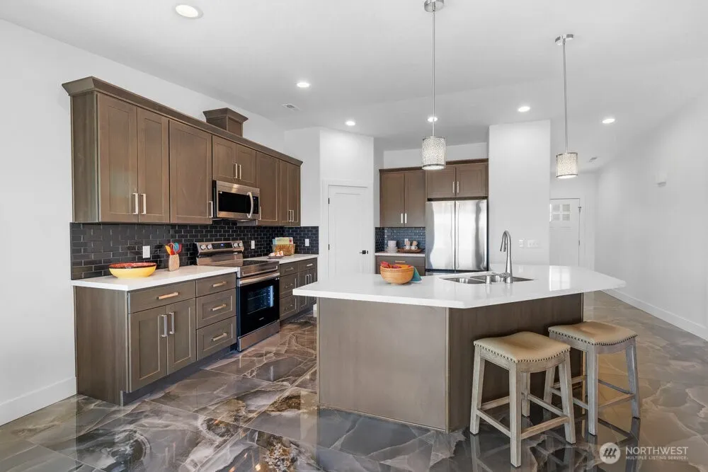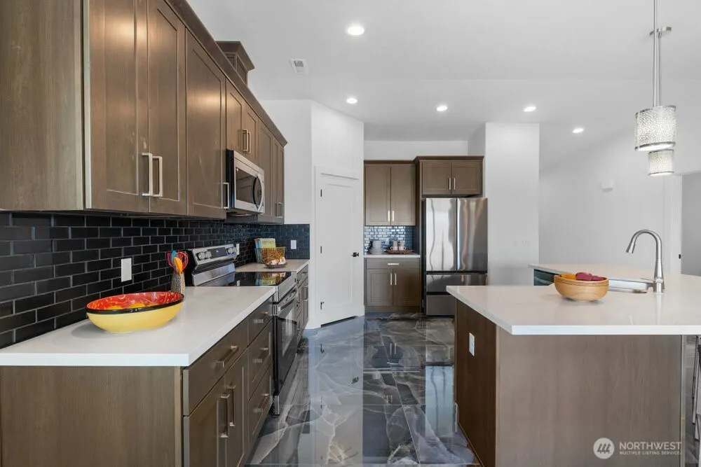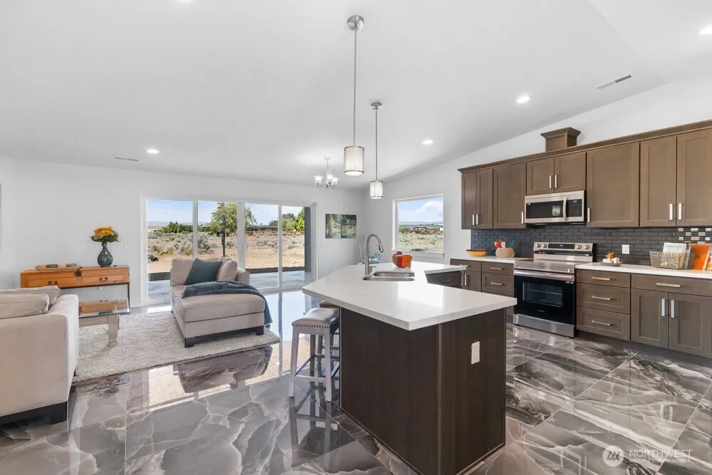 Striking new Rambler on a spacious lot with lovely mountain views has gorgeous marble tile throughout. It’s the “pick of the crop” on private Cherry lane with 3 spacious bedrooms. This homes privacy adds to the feeling of getting away. Open luxurious kitchen has large eating bar, quartz counter tops & pantry! Cozy in winter but flooded with light for ambiance all year round. Large lot with room for privacy and activities. Front porch gets morning sun and covered back deck gets glorious sunsets and has room for a lovely outdoor kitchen situated on a spacious cul de sac that backs to our professional 18 hole golf course. Work from home because we’re equipped with the latest technology 5G from I-Fiber.