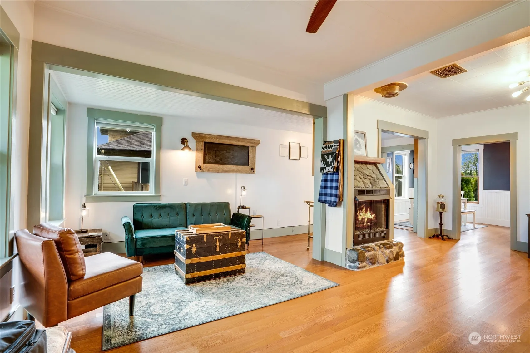Nestled in the heart of Downtown Orting, this 1925 abode, has been meticulously revitalized w/ a keen eye for both detail & authenticity. Whispered tales of its Craftsman heritage, now seamlessly intertwined with contemporary comforts. Modern amenities, including a new roof and updated electrical and plumbing, ensure a worry-free lifestyle. The main floor boasts a primary suite alongside a cozy second bedroom, while upstairs unveils a spacious retreat crowned with exposed beams and office nook. The kitchen showcases glass-front cabinetry, brass pulls and sweet artisanal touches. Step outside to discover your backyard oasis, complete with a gazebo, fireplace and covered BBQ area, imagine your future gatherings under the stars. Welcome Home!