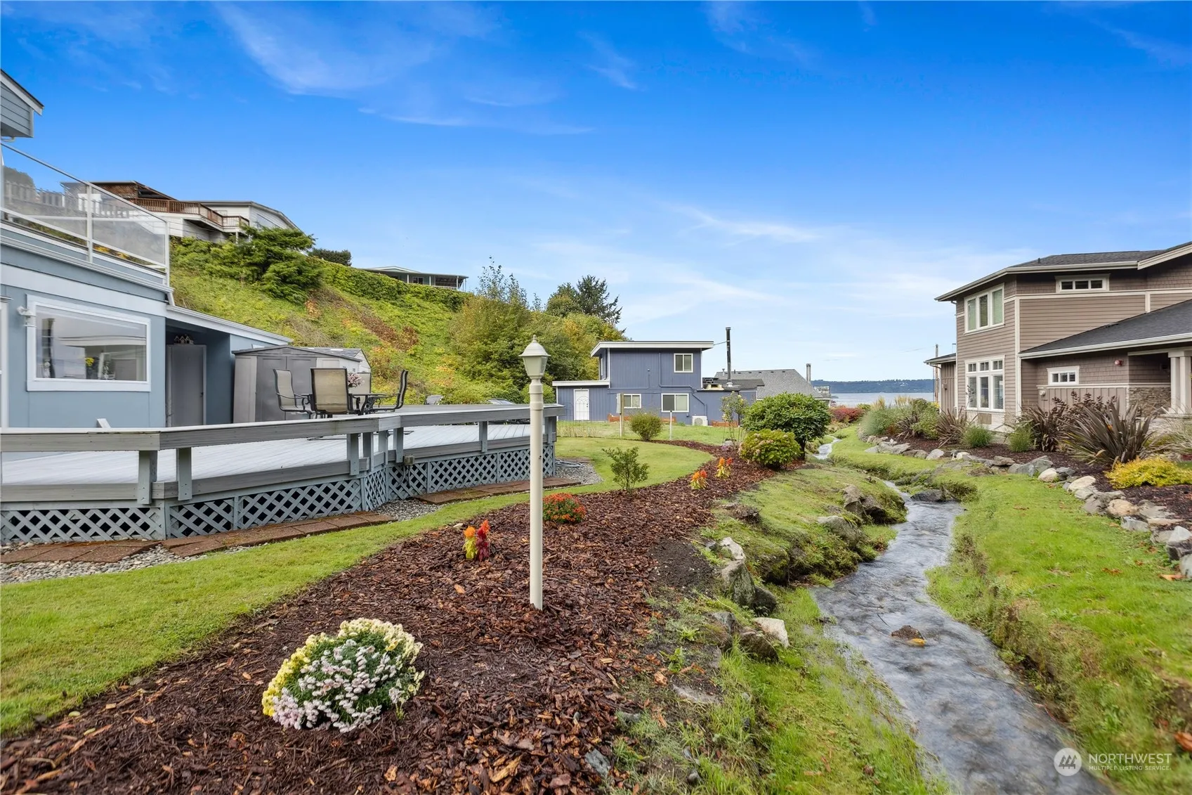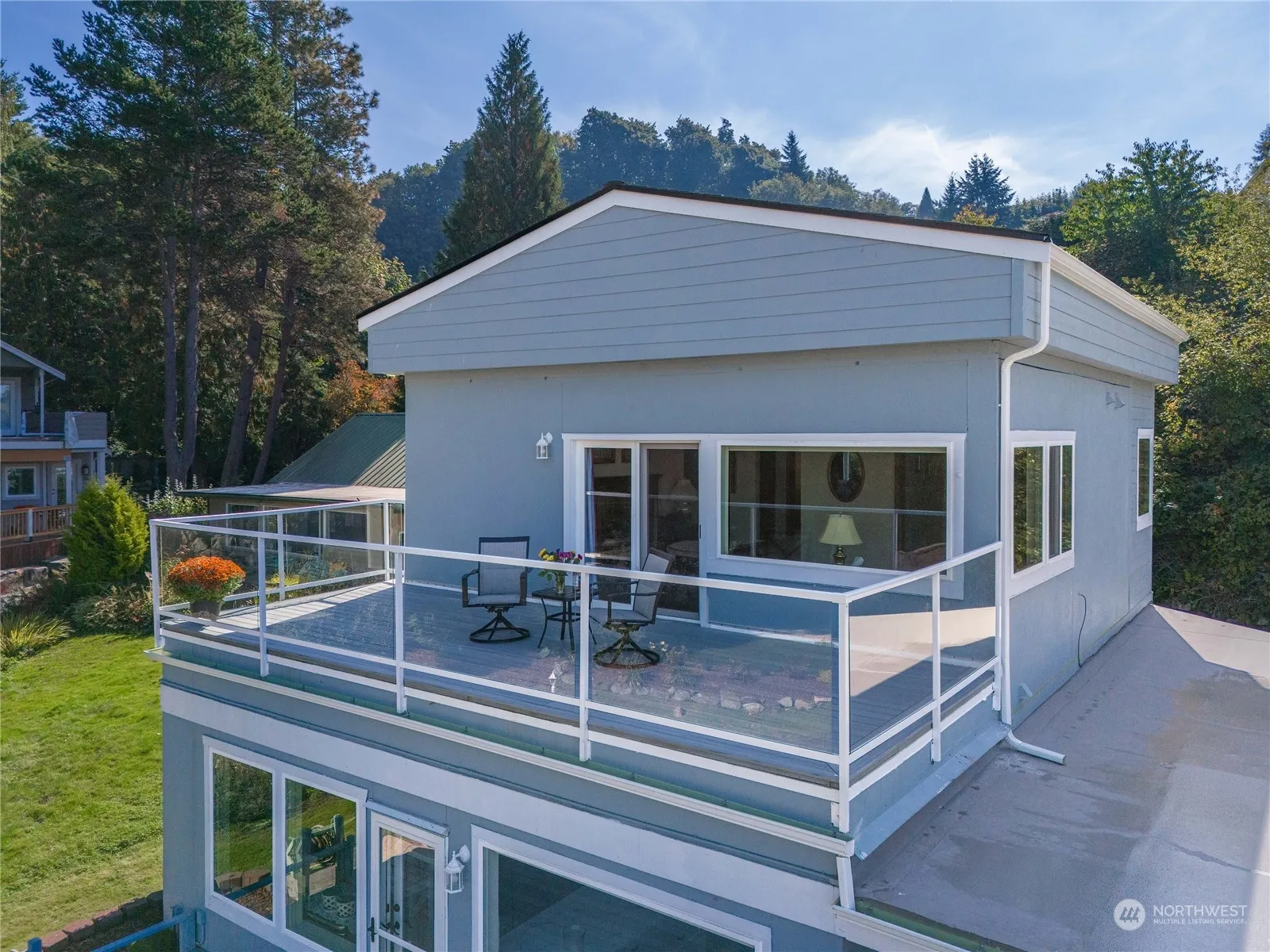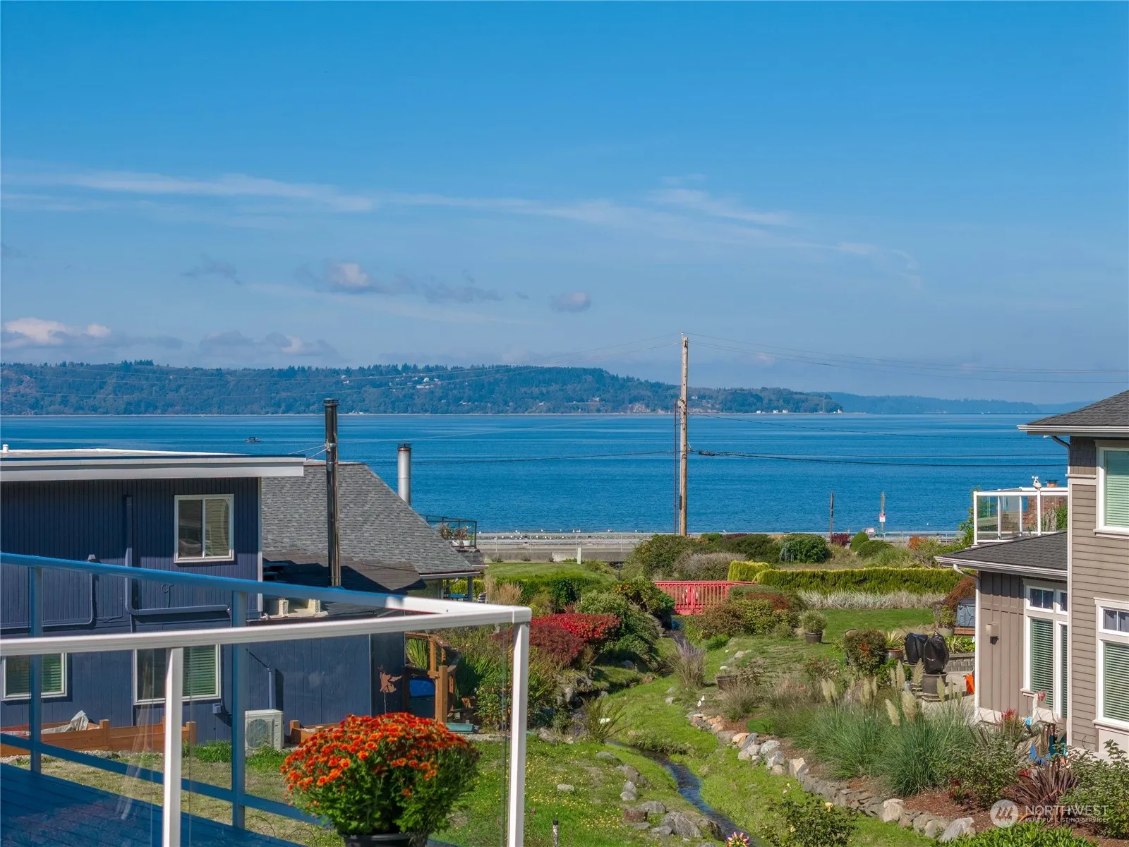 Experience the epitome of coastal living in this Redondo Shores home offering breathtaking views of the sound and mountains. Nestled steps away from the boardwalk w/ community beach access and a tranquil creek bordering the yard, this 4-bedroom haven exudes luxury and comfort. Upgrades include a new gabled roof and Trex decks on each level. Kitchen w/ new quartz countertops and sink, new picture windows invite the outdoors in. 2 bedrooms and bath w/ Jacuzzi tub on main. Upstairs the primary suite indulges w/ abundant windows framing sweeping views, a spacious walk-in closet, and a lavishly updated bath. Automated blinds, fresh paint throughout. Culligan water filtration, mini-splits for heat and A/C. 2 car carport, parking pad for guests.