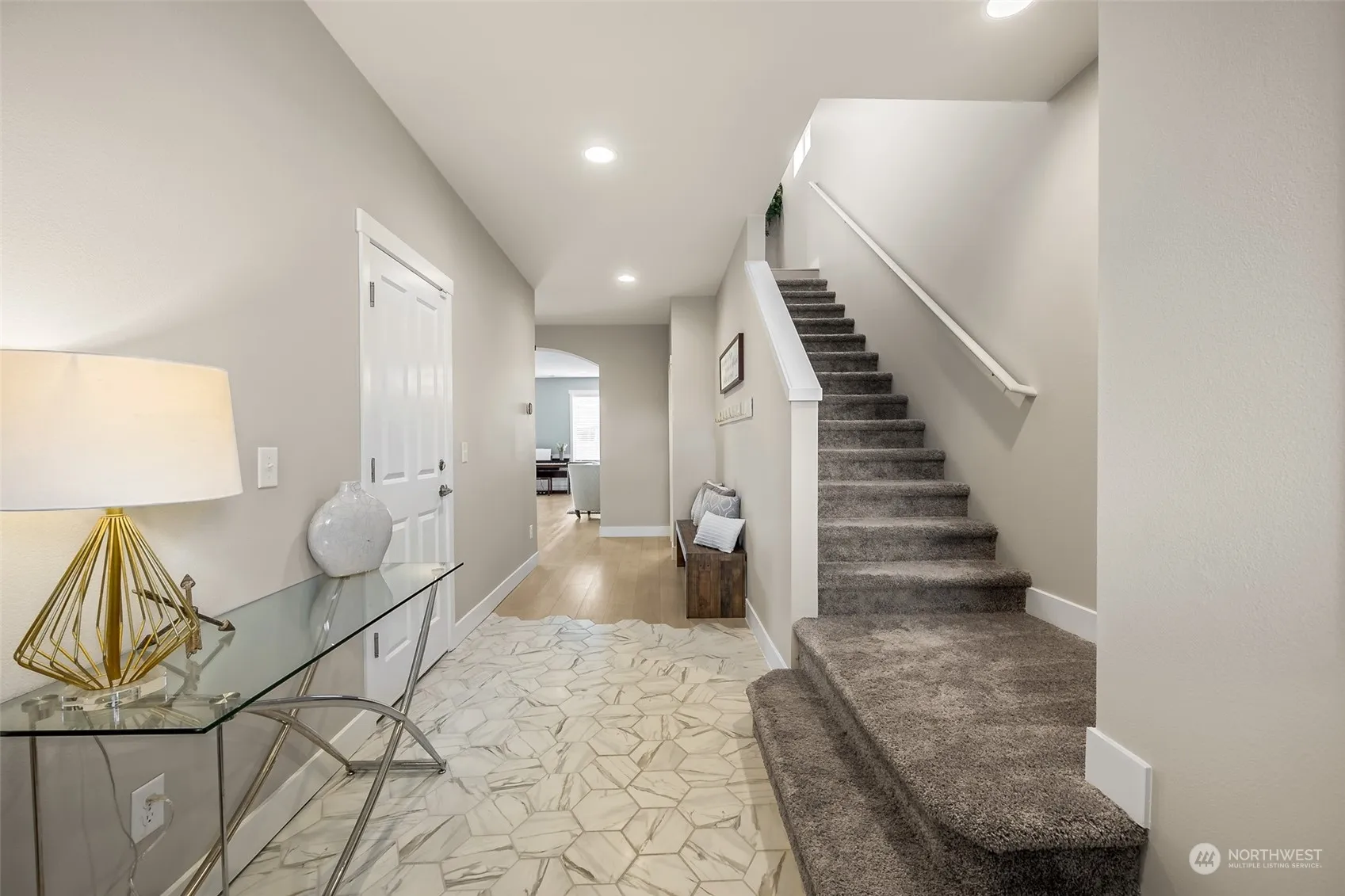 Welcome home to this gorgeous 5 Bed 3 Bath. Including a downstairs bedroom that can double as an office. Plus, an oversized lounge/bonus room upstairs. Enjoy cooking in the spacious kitchen with a large island and a dining room. Primary suite featuring a 5-piece bath and a large walk-in closet. Home includes a 3 Car Garage and a fully fenced backyard. This home has so many great features, brand-new high-end appliances, new flooring, new light fixtures, freshly painted interior, updated bathrooms, and so much living space. Foothills trailhead is just a few minutes walk, downtown Orting is also within walking distance to enjoy shopping and restaurants, and High Cedars golf course is just down the road. Assumable VA Loan, $390K at 3.25%.