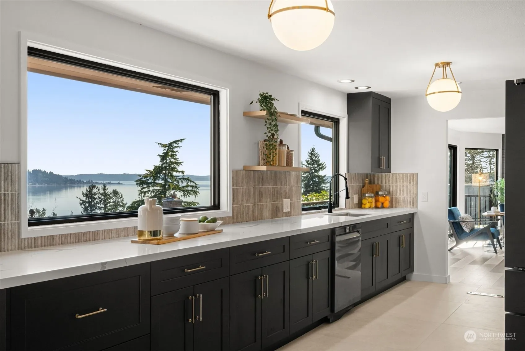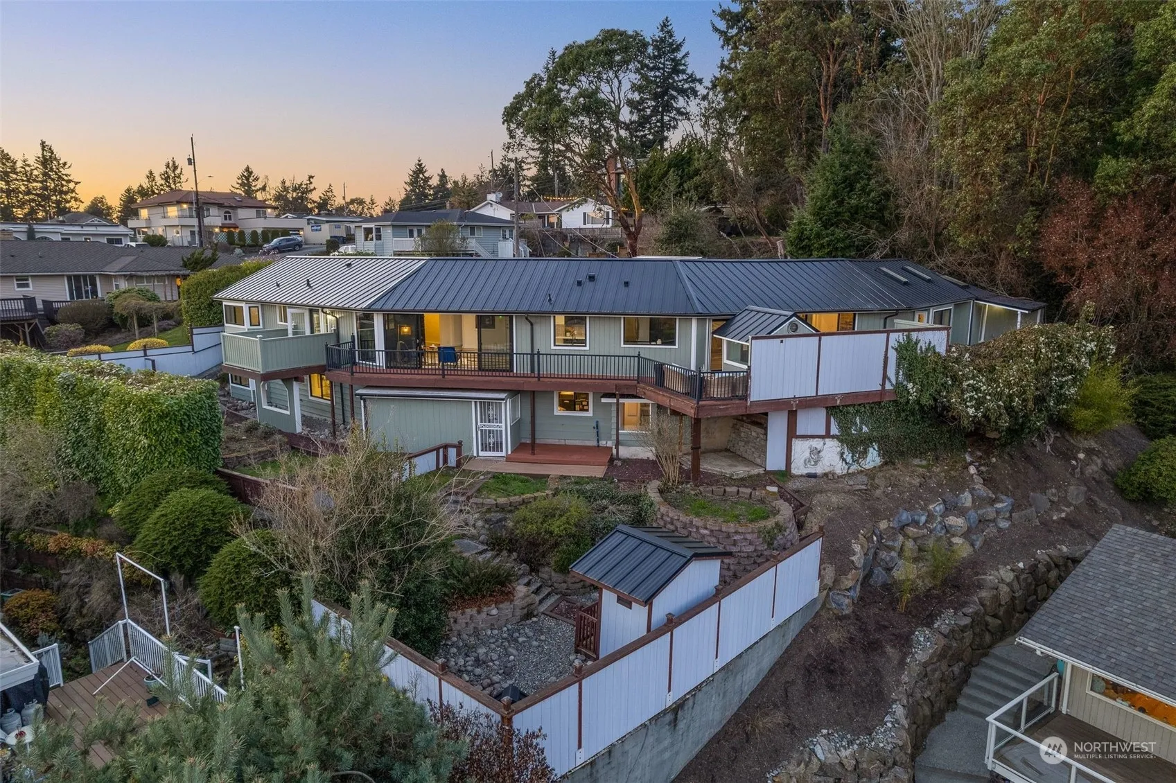 Welcome to your Shorewood oasis, where panoramic South-facing Puget Sound vistas beckon through floor-to-ceiling windows. Delight in sunsets from the expansive deck, paired with a glass of wine from your very own cellar. Embrace your green thumb in the garden, tucked away behind the privacy of a gated entry & parking for up to 5 cars in the courtyard. Entertaining is effortless in the thoughtfully upgraded kitchen. Enjoy peace of mind with recent upgrades including a durable 50-year metal roof, modern kitchen & bathroom remodels, & electric furnace. This exceptional property offers bonuses such as multiple outbuildings, covered RV parking, a convenient butler’s pantry, a versatile bonus studio shop area, & a well-appointed laundry room.