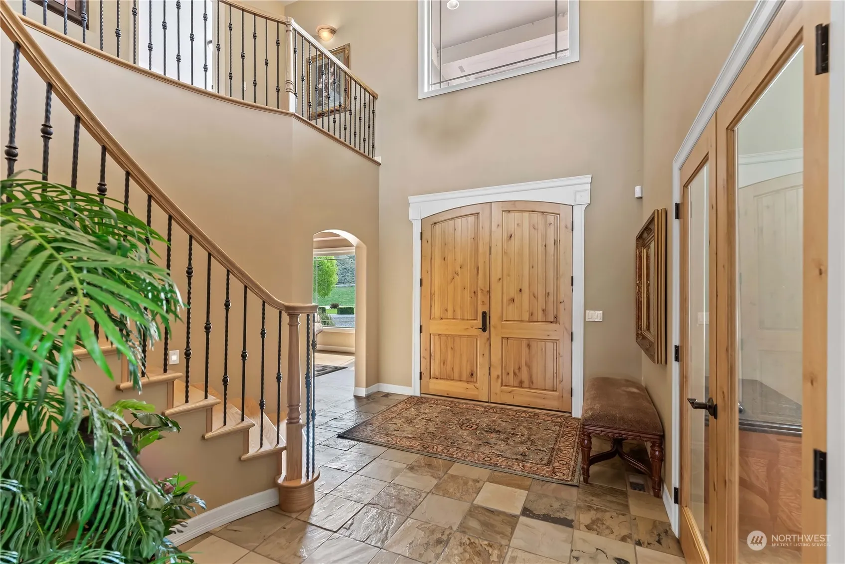 Spectacular country estate with amazing patios and gathering spaces. Soaring great room with 2 story ceilings. Quality kitchen spaces with beautiful cherry cabinets and granite countertops. Main floor primary suite with 5 point bath and oversize closets. 2 story foyer opening to second level and 3 bedrooms plus theater/rec room and lots of storage spaces. 4 car over 1700 sqft garage. Level 3.9 acre lot with well irrigation water and lots of pasture space. Beautiful water feature and Koi pond. Large patio made for gathering times. Convenient access to HWY 2 and close to river front loop. Quiet country setting with so much to offer. Exterior painted 2 years ago.