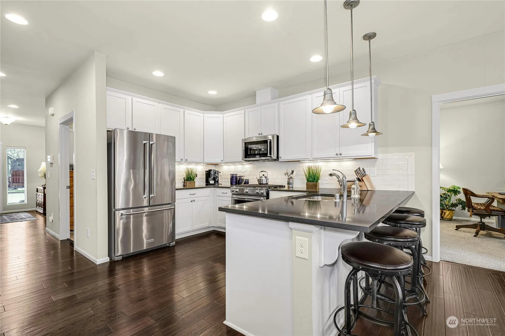 $40K PRICE IMPROVEMENT! QUALIFIED BUYER MAY ASSUME MORTGAGE AT 2.5% INTEREST, PENDING APPROVAL. Relax & relish the stylish & effortless lifestyle at Woodside, Mount Vernon’s Premier 55+ community. The stunning “Chestnut” floorplan boasts numerous custom designer upgrades. Savor the open floorplan, Living/Dining & gourmet Kitchen w/upgraded SS appliances & finishes you’ve always coveted. The main floor primary suite features a luxurious 4-piece bath/walk-in closet. Upper level Bonus Room w/ adjoining bed/bath, ideal for crafts or company. A third bedroom/office on the Main. Stay comfortable w/Gas fireplace & Central A/C. Fully fenced yard w patio & remote canopy. Amenities include clubhouse, parks, trails & HOA maintained front/back yards.
