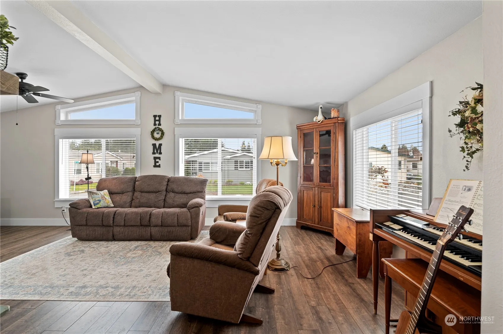 Welcome to your slice of paradise nestled in the heart of the breathtaking Skagit Valley! Step into this meticulously maintained 2-bedroom, 1 3/4 bath oasis with a recently remodeled kitchen w/stainless appliances & tons of counter space. This home has 1425 square feet of comfortable living space in a serene 55+ gated manufactured home community. The property boasts a 2-car tandem garage w/workspace. Step outside to discover your own private sanctuary, complete w/a cozy gazebo seating area & outdoor firepit and storage shed. Community features include a BBQ area for summer cookouts and the clubhouse provides a hub for social activities & events and an indoor pool for year-round relaxation, every day feels like a vacation right at home.