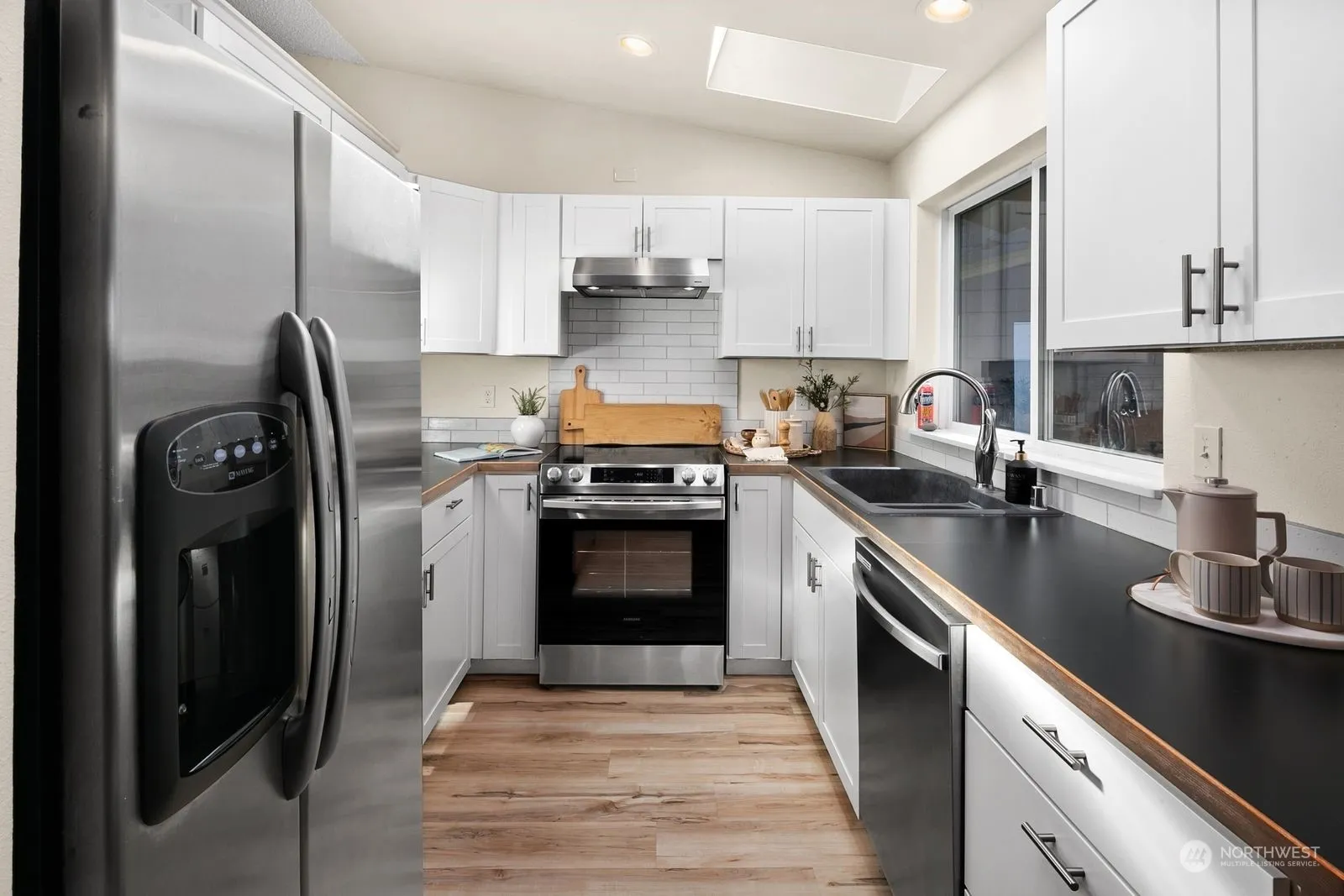 Modern updates & island charm come together in this Vashon property. This move-in-ready home boasts a newer exterior and roof. Enjoy a bright interior with new lighting and stylish LVP flooring, complemented by a cozy gas fireplace. The dining area, adjacent to the remodeled kitchen, features sliding door out to a newer back deck and patio. Upstairs has 2 bedrooms, including a spacious primary suite. Downstairs is an open bonus room w/ a laundry room and storage. Oversized 2-car garage has a Shop area and potential to finish the upstairs. Fully fenced backyard w/sprinklers. House is wired with Comcast broadband. Community beach down the hill, golf course, and access to miles of trails nearby. Don’t miss new Dockton Park and famous troll.