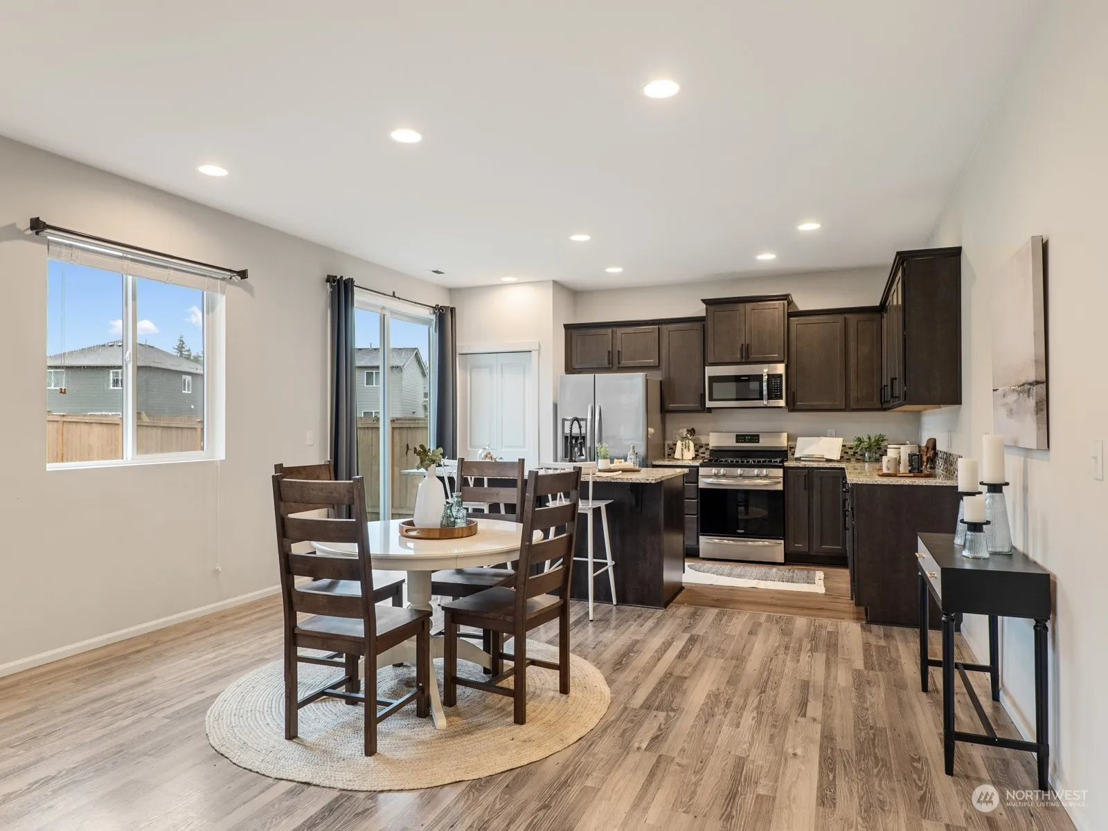 Stylish, comfortable 5 bedroom home in Suncrest Farms! Amazingly efficient, functional layout with 4 bedrooms up and 1 down- ¾ bathroom on main floor. Two story entrance and 9’ ceilings throughout main floor for maximum natural light, airy feel. Statement gas fireplace in great room. Contemporary finishes. Completed late 2018. Dreamy primary suite with crown molding, 5 piece bath, walk in closet, Mt Pilchuck out your window. Oversized 2 car garage. Flat, fenced backyard. Cool, unique community greenspace directly across the street hosts occasional neighborhood gatherings, casual fun, peaceful westerly view of distant nature and painted skies at sunset. Granite Falls, come for the affordability, but soon discover why so many choose to stay!