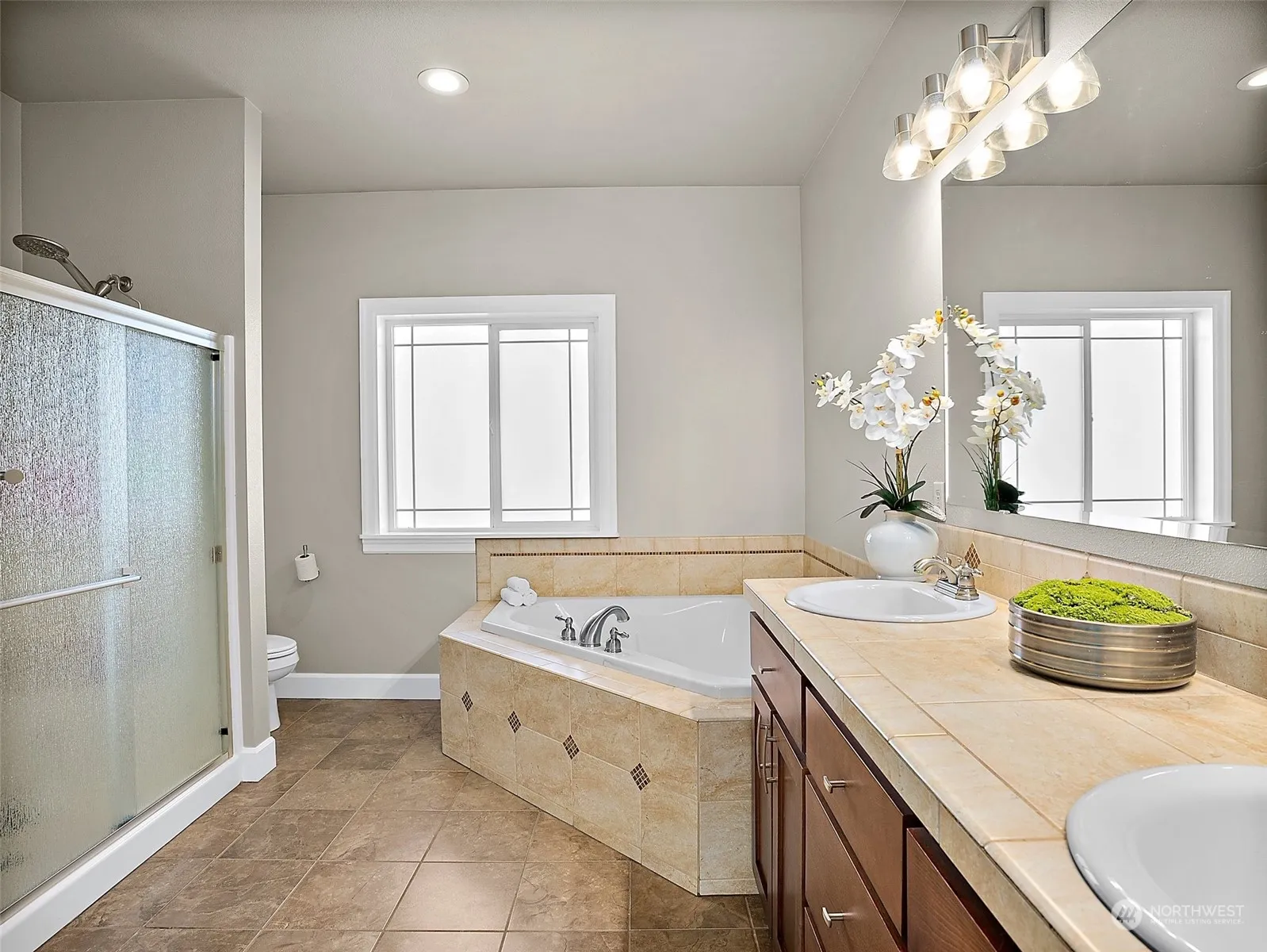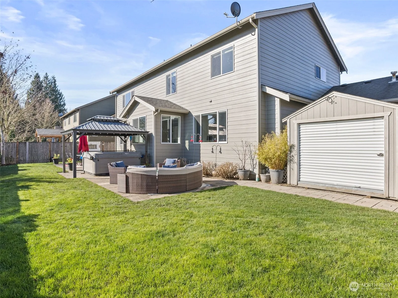This 4 bed, 3 bath offers a community feel & easy HWY access! Over 2850 Sqft.. the bonus room, office, utility room, & main suite that are absolutely not lacking in size! The 5 burner gas stove, large outdoor patios & gazebo covered hot tub area, make this an entertainers dream. Not to mention the raised garden beds, upgraded shrubbery & Rose hedges, 10×10 outbuilding & so much more. The 3 car garage features a durable epoxy coated floor covering. In 2019 the kitchen & bathrooms were completely remodeled using high end materials as well as new paint throughout. The thermostat, as well as garage doors can all be controlled from your phone! You have to experience this immaculate home for yourself!
