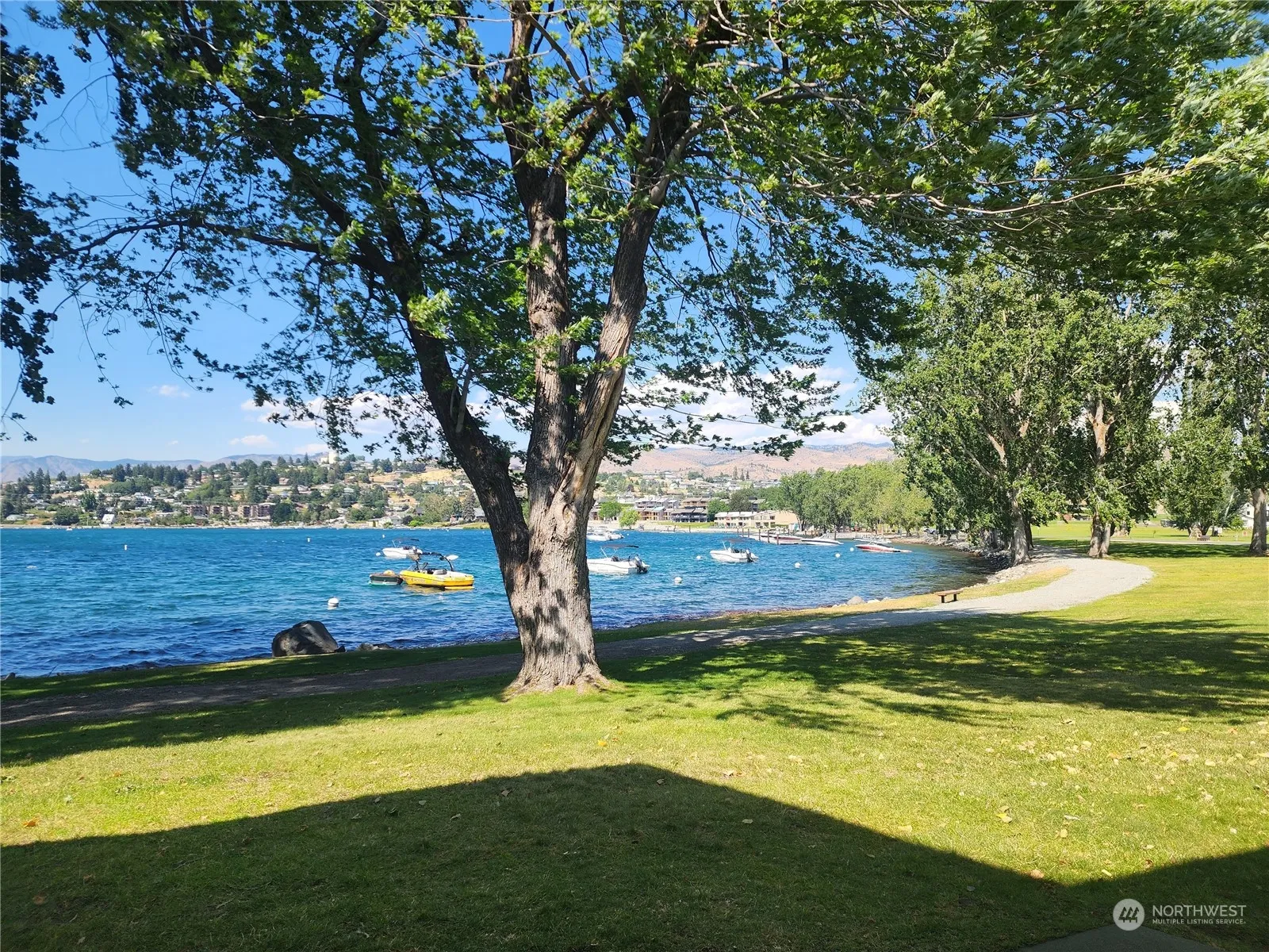GROUND floor 2 bedroom, 2 bath luxury waterfront suite. Buy NOW & enjoy July 24-31 & Nov 20-27 in 2025. Beautiful lake views with trees close by for afternoon shade. Enjoy 3 rotating weeks every year. HOA Fees $767 per quarter allows you the most affordable way to experience all seasons at Wapato Point Resort. Waterfront, boat moorage, lawn & walking path directly in front of the condo. Remodeled from floor to ceiling with high end upgrades. Use your weeks, rent for income or trade your weeks thru RCI or Interval International & visit other places. Purchase includes use of waterfront, boat moorage, children’s activity center, basketball/tennis/pickle ball courts, indoor/outdoor pools, watercraft rentals & more.